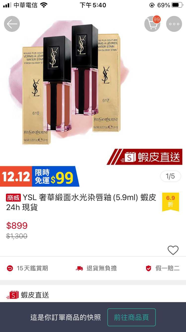 現在在【蝦皮直送 美妝】買【YSL奢華緞面水光染唇釉】居然只讓我花了700!
