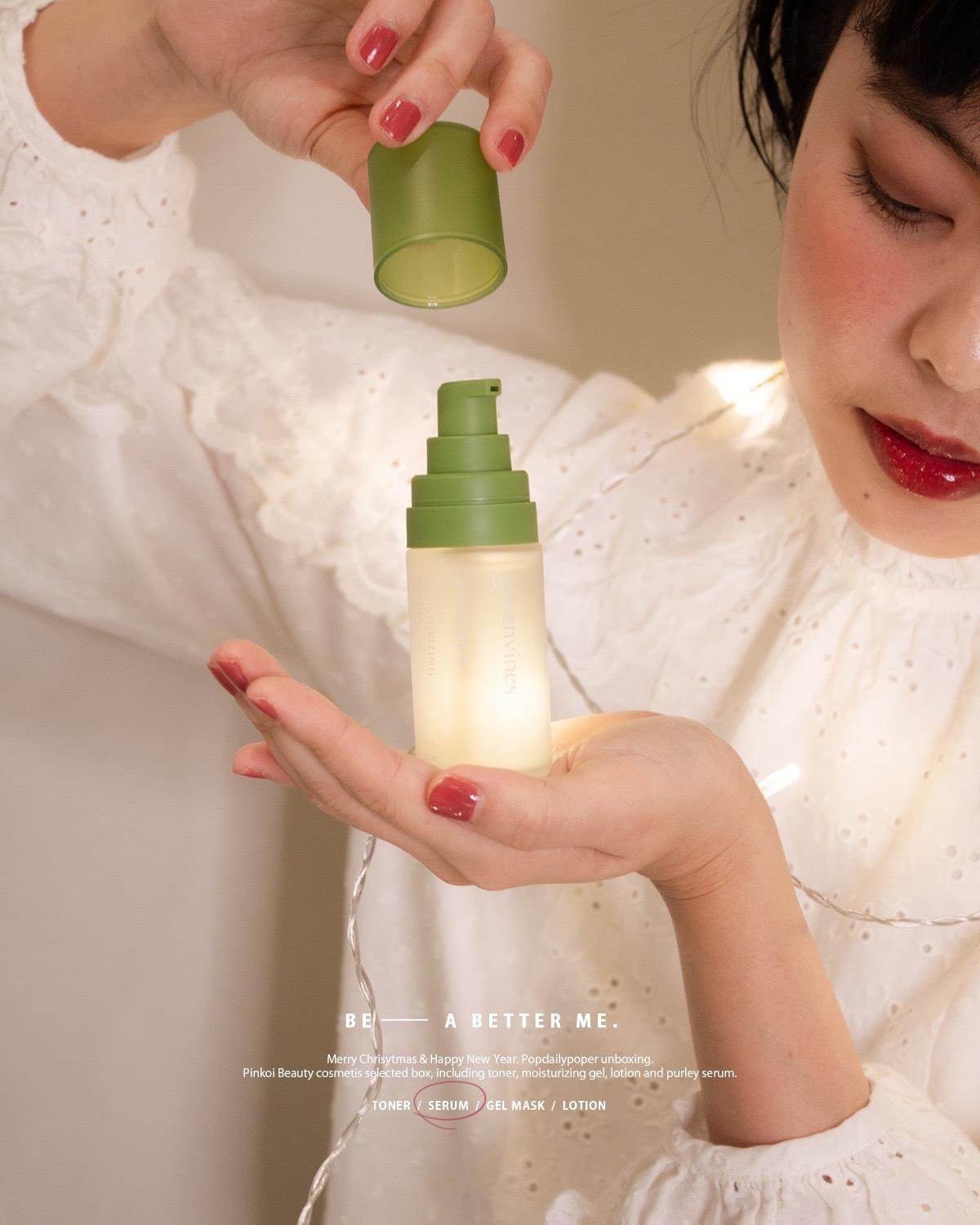 盒裡包含的綠藤生機, 是冬季保養的補水綠洲! 整瓶精華液裡的滿滿雙分子玻尿酸, 除了讓肌膚覆蓋保水層以外, 還能訓練皮膚的涵水力喔!