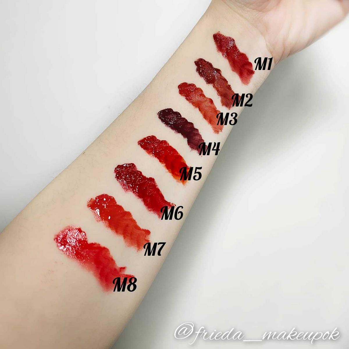 M7、M8開始走向水潤唇彩會出的顏色,只是質地是偏霧面的奶橙色,也都很好搭配~