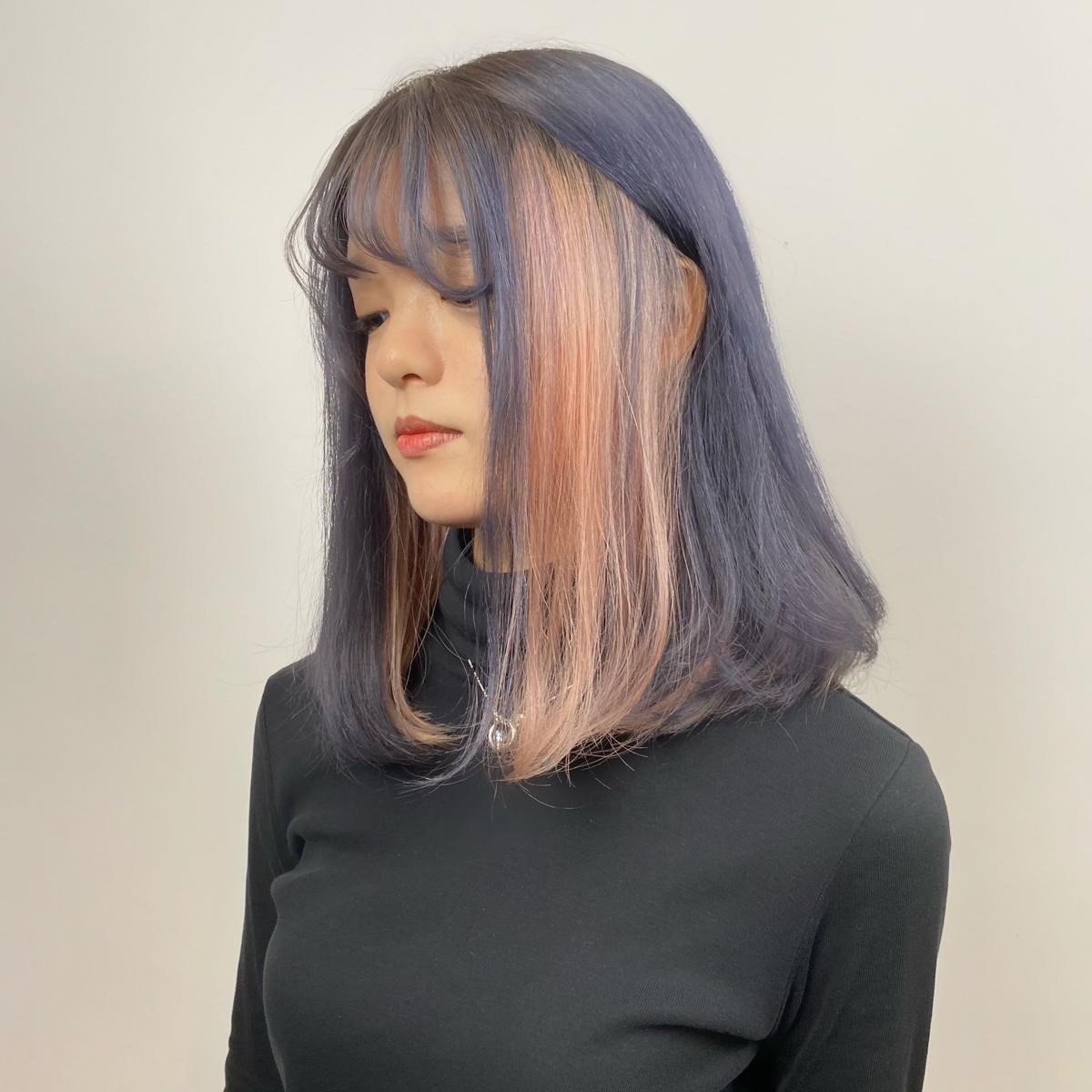 #耳圈染 #粉橘色調 #藍灰色 紫灰色
