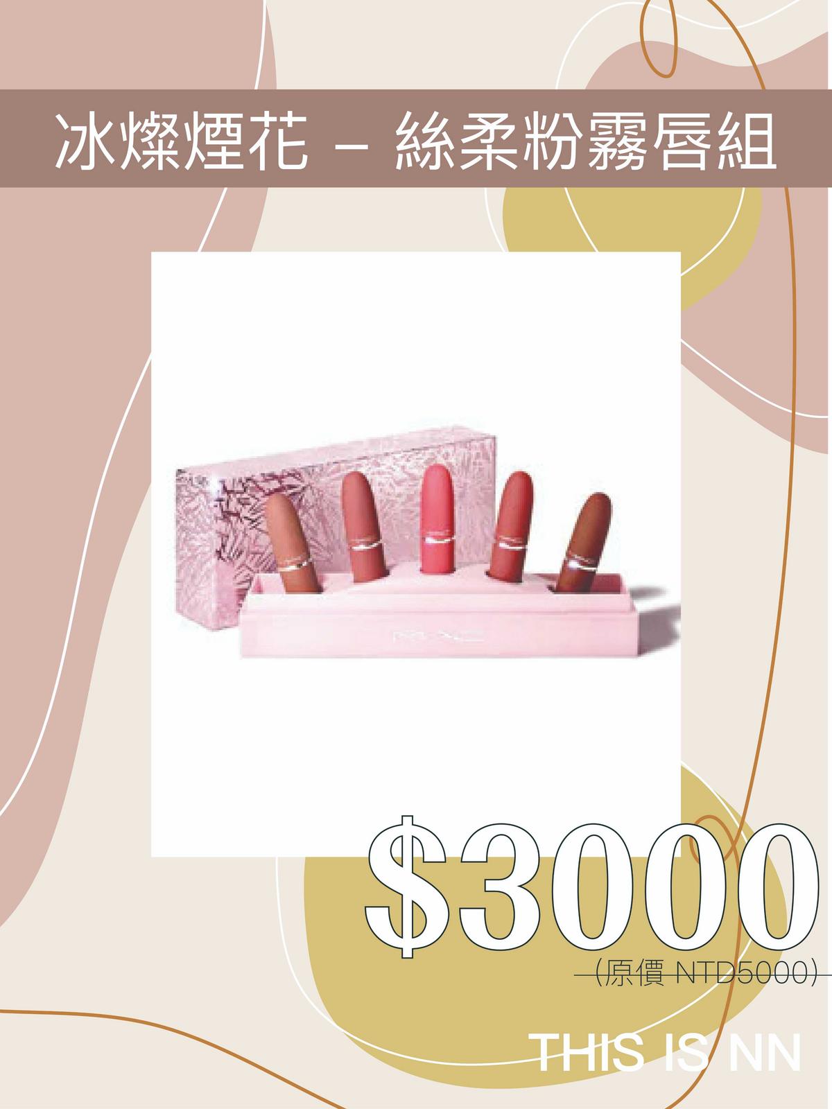 還有今年推出的冰燦煙花 - 絲柔粉霧唇組,原價5000,現在3000就能入手一整組五支