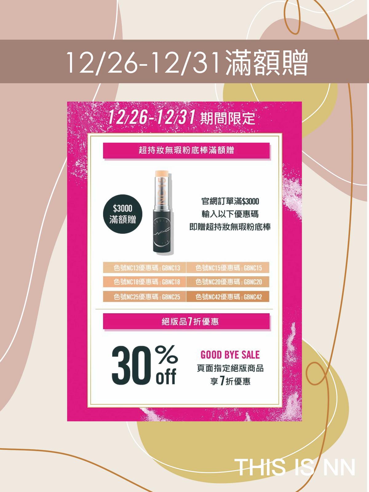 而且現在官網下單滿3000,就送超持妝無瑕粉底棒
