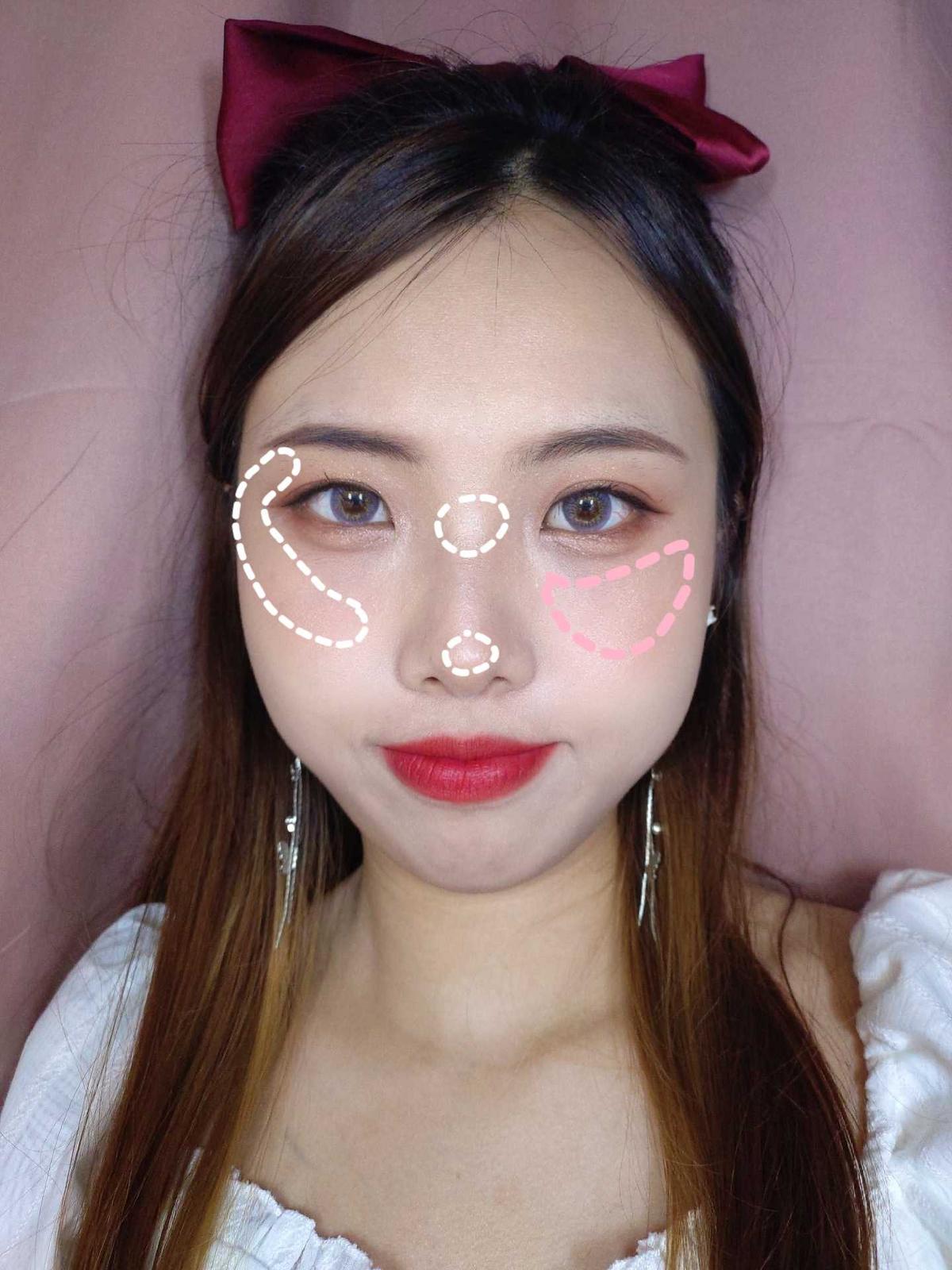 簡單來說就是上在臉部黯沉/凹陷的地方(太陽穴比較是我個人骨骼問題,如果沒凹不用硬打亮)