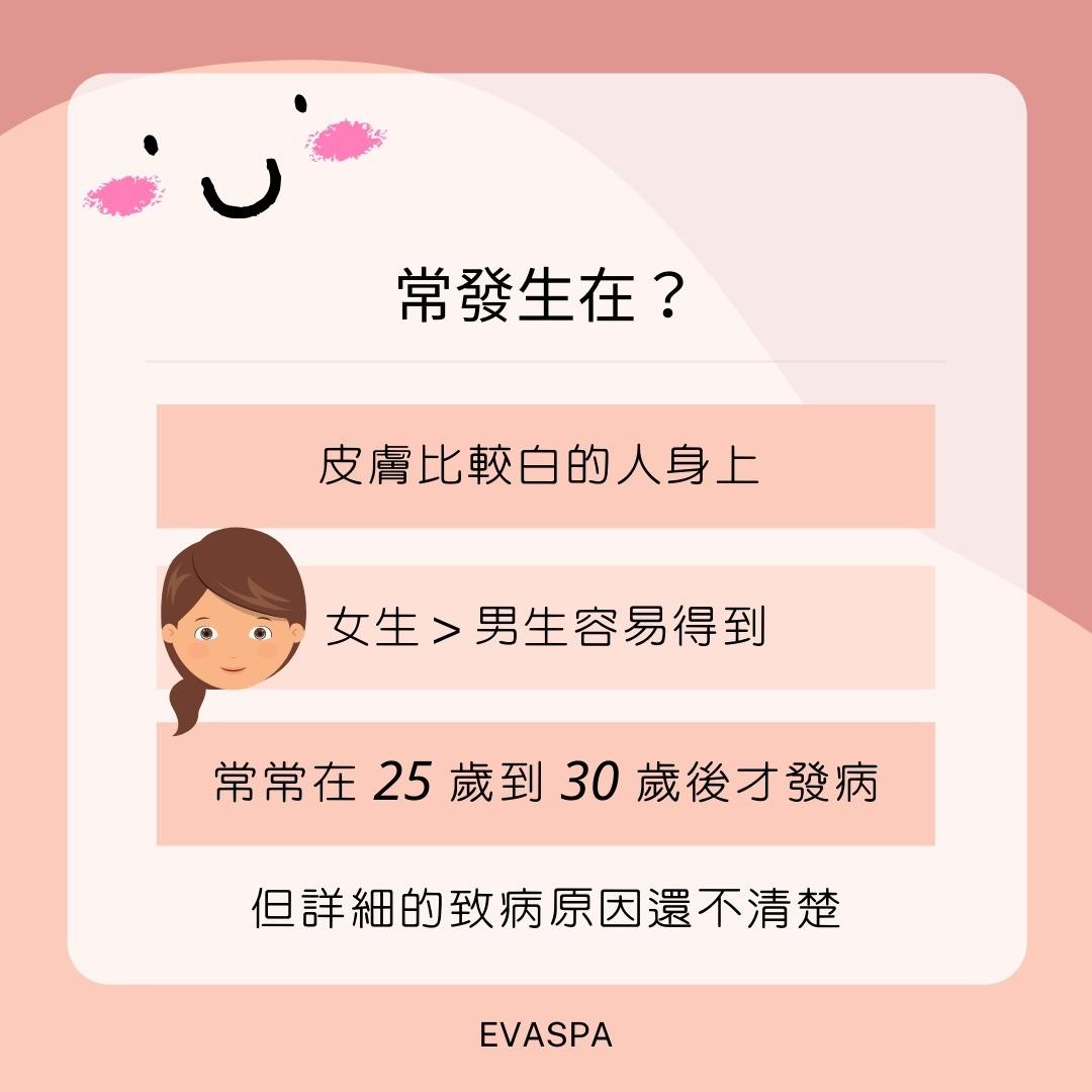 2、最常發生在肌膚白皙的人身上,有這症狀的白種人就高達30%-50%。