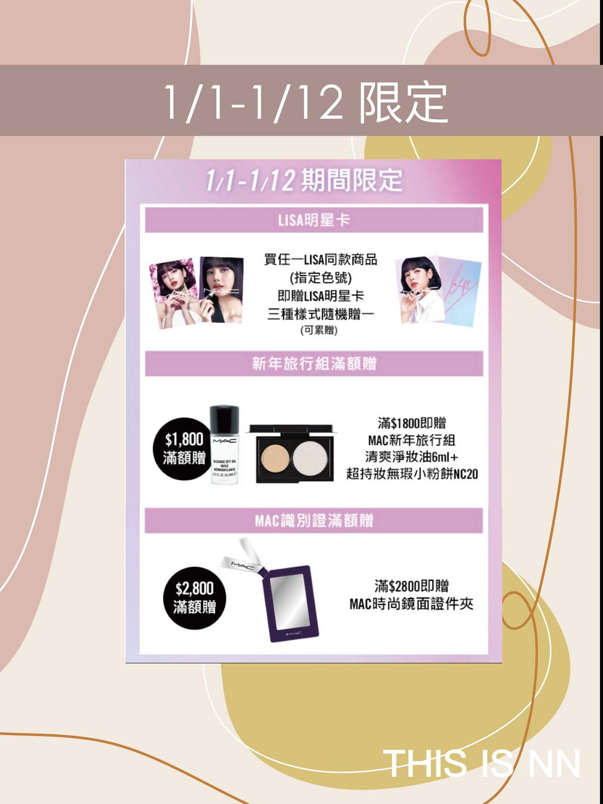 [贈品] M.A.C x Lisa 買同款小卡 滿額送旅行組彩妝!