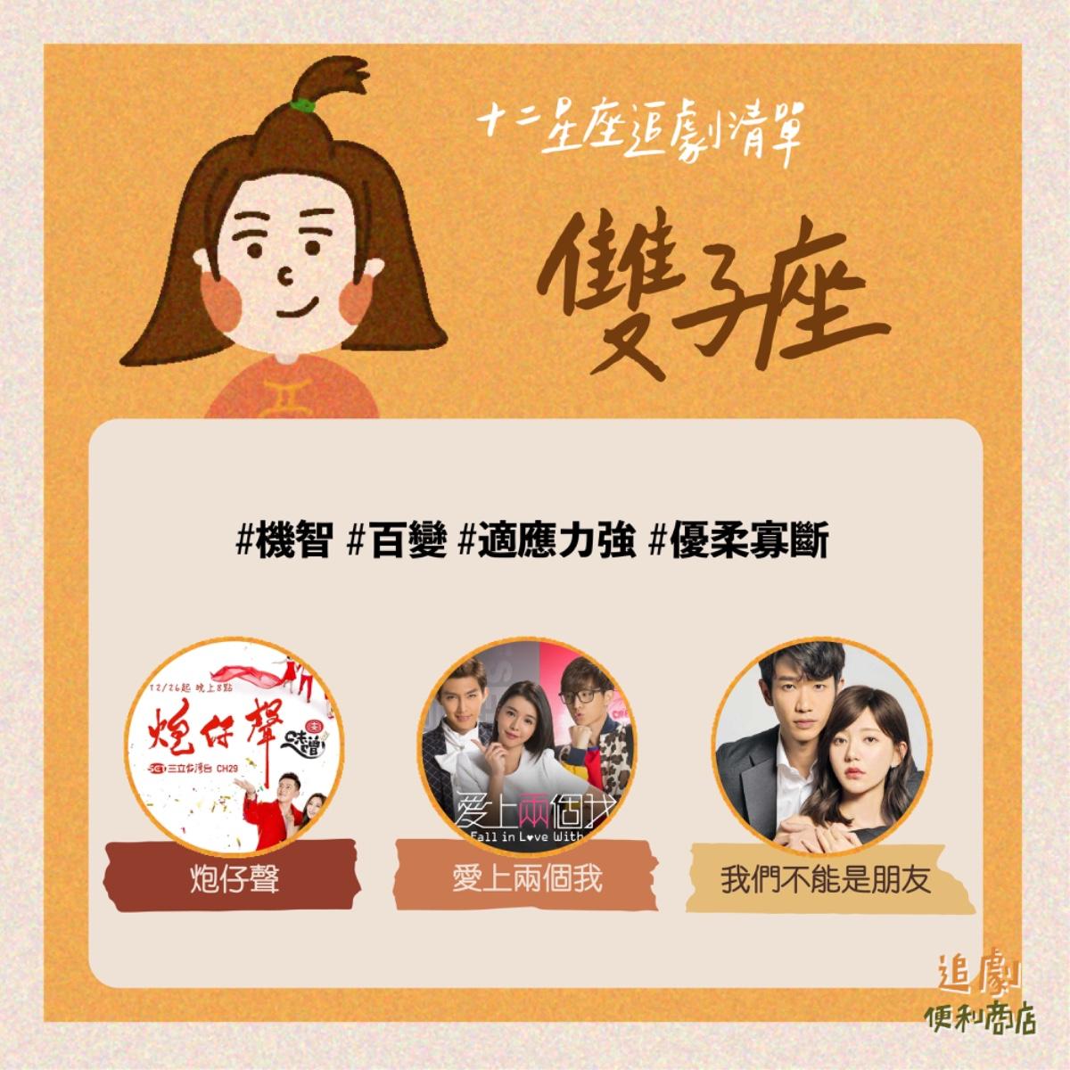 #十二星座追劇清單 #十二星座 #星座 #雙子座 #雙子 #風向星座 #八點檔 #炮仔聲 #多情城市 #三立 #民視 #愛上兩個我 #李毓芬 #炎亞綸 #我們不能是朋友 #劉以豪 #郭雪芙 #華劇 #台劇 #職場劇 #愛情 #倫理 #偶像劇 #追劇便利商店