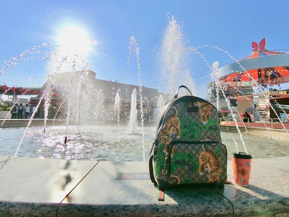 A great sunny day 🌞 But I prefer to work People mountain people sea all over Not my type #sunny #guccibag #fountain