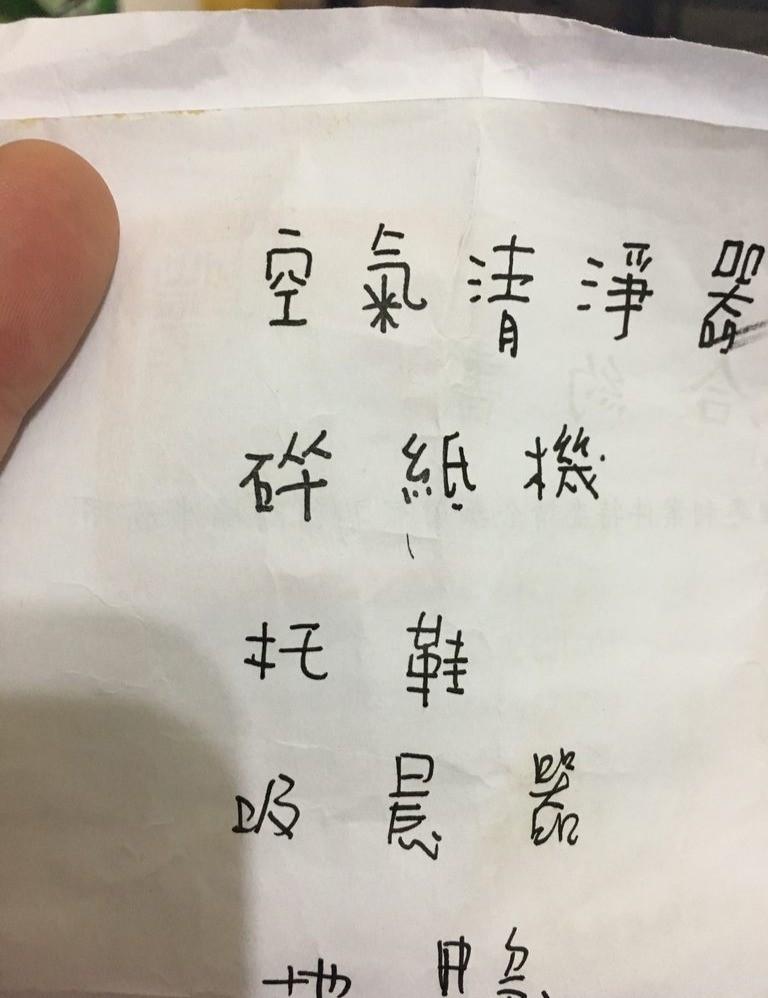 後來我發現一張妳列的清單,上面寫了一些妳想把我房間的東西換新的物品。