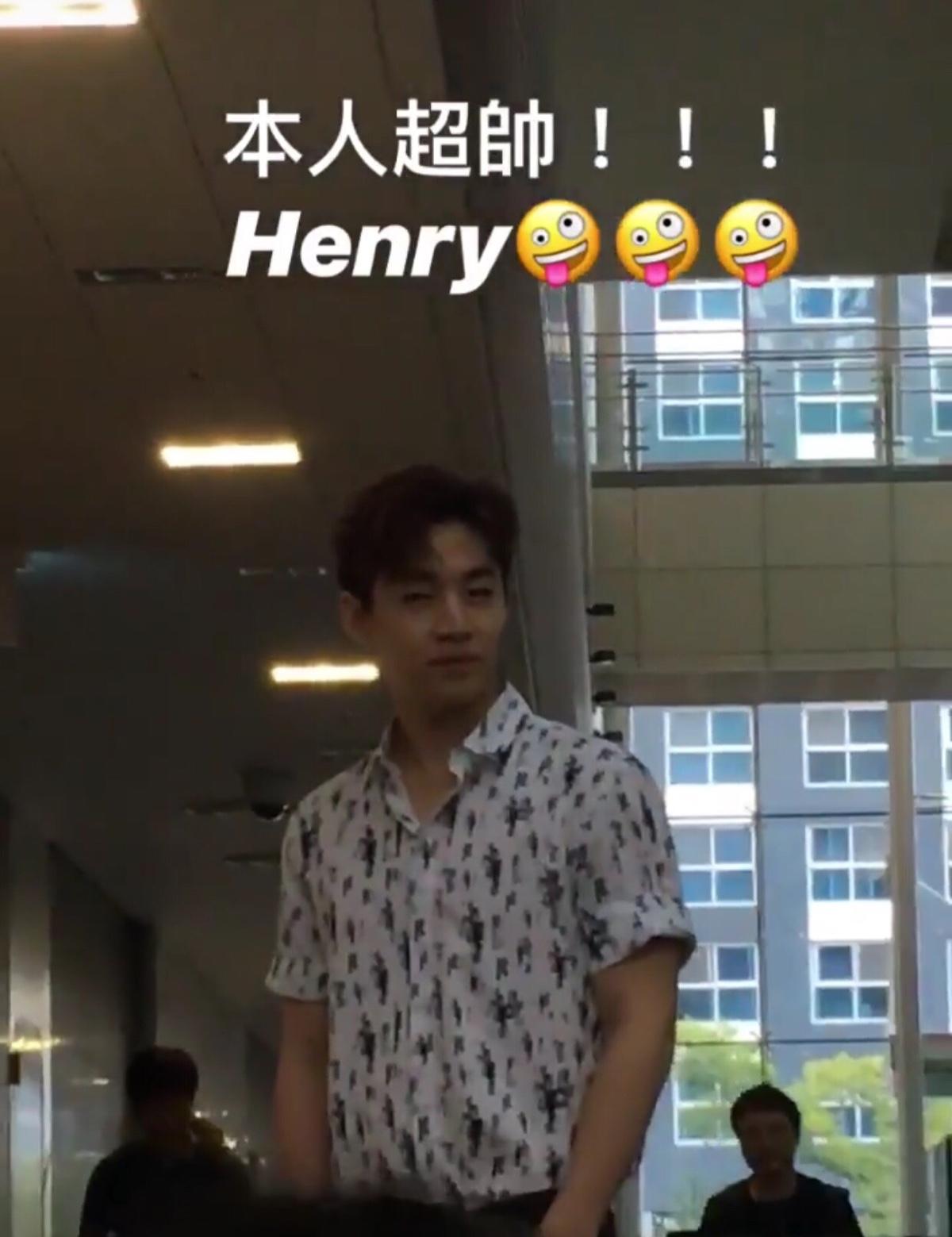 其實他已經走向電梯很久了結果因為大家都在滑手機沒人看到所以沒人尖叫(害我以為他人氣很糟糕哈哈)後面韓妞才後之後覺尖叫 henry就被嚇到然後打了很可愛的招呼