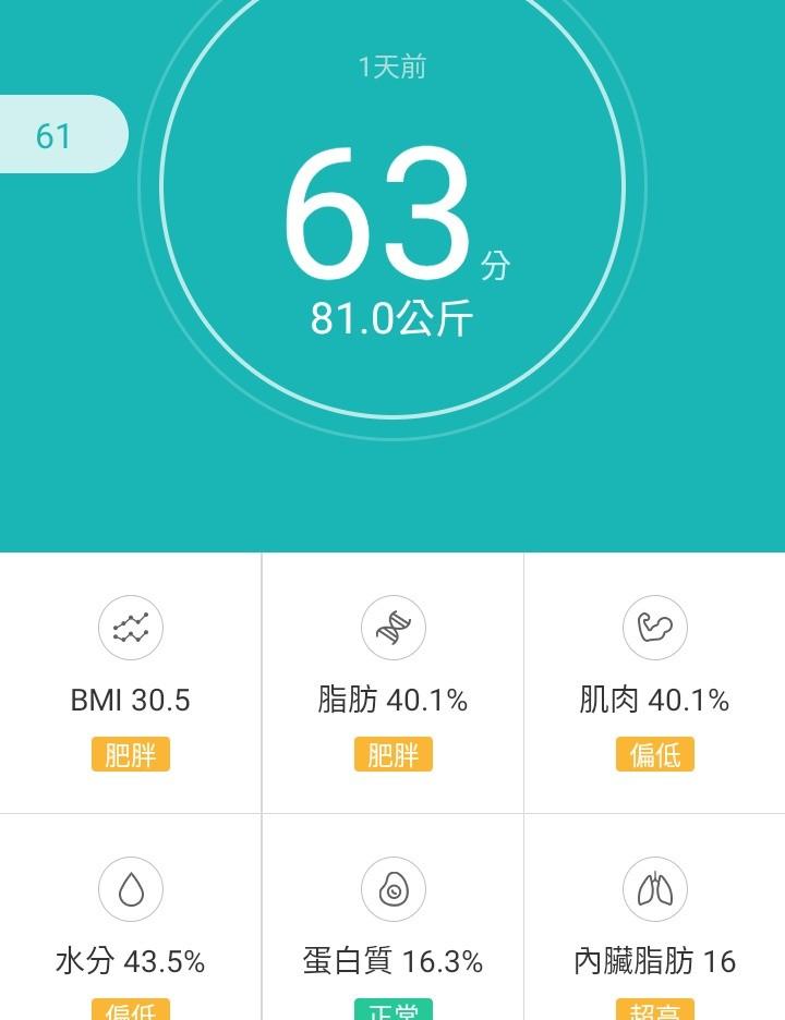 嗯!目前我的體重是81.0kg!另外,打算每週四量體重更新日記,大目標是60kg,在過年前希望可以突破到7開頭!