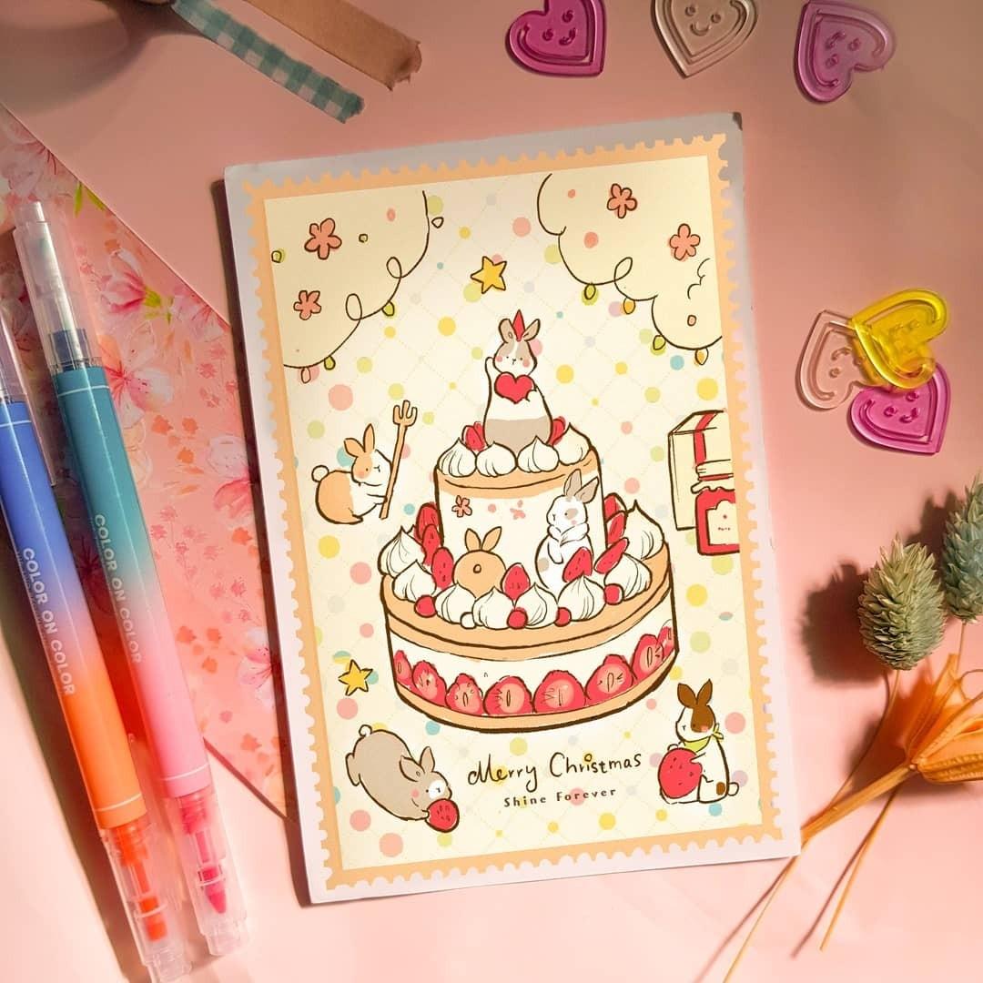1.Lara耶誕兔兔草莓女孩明信片