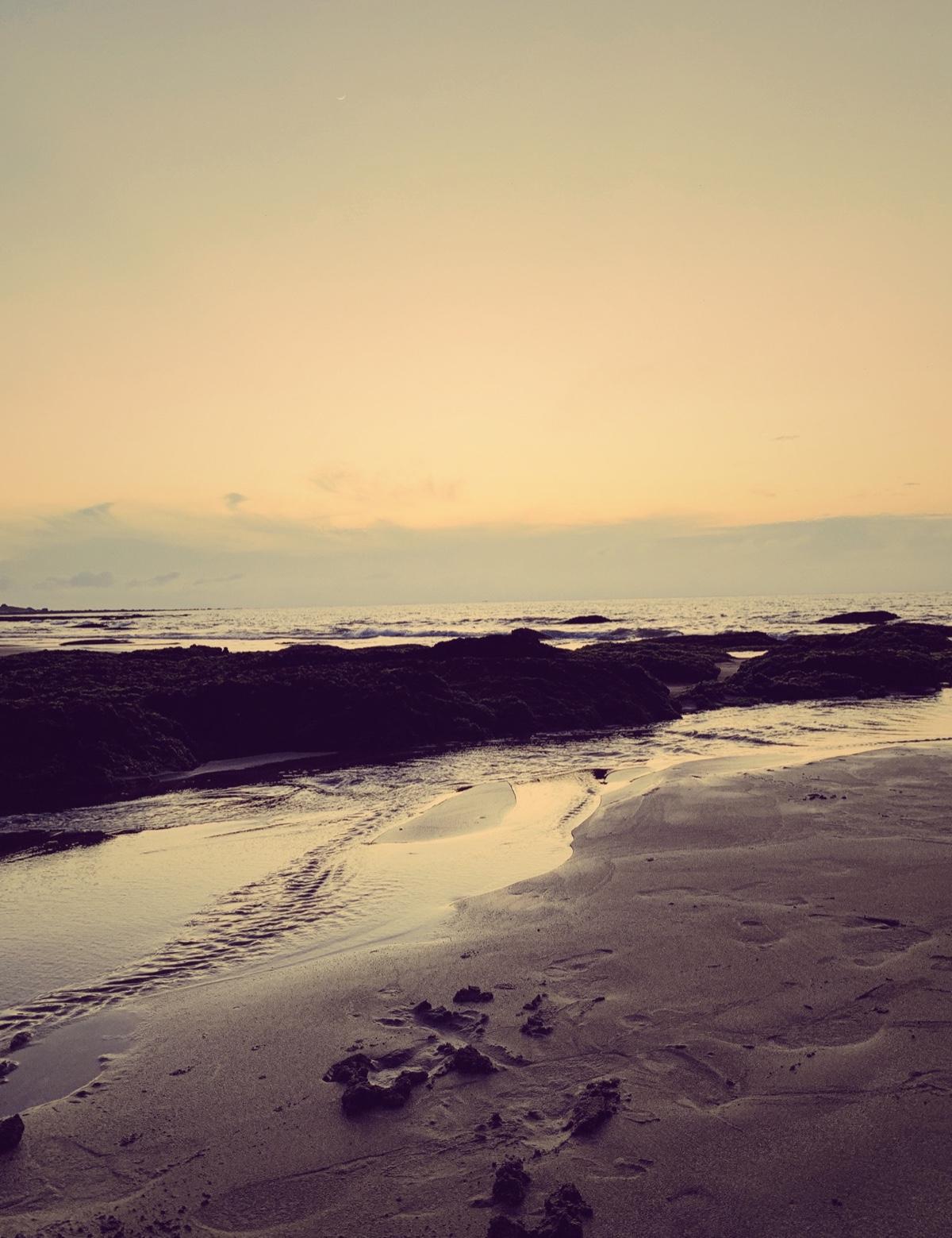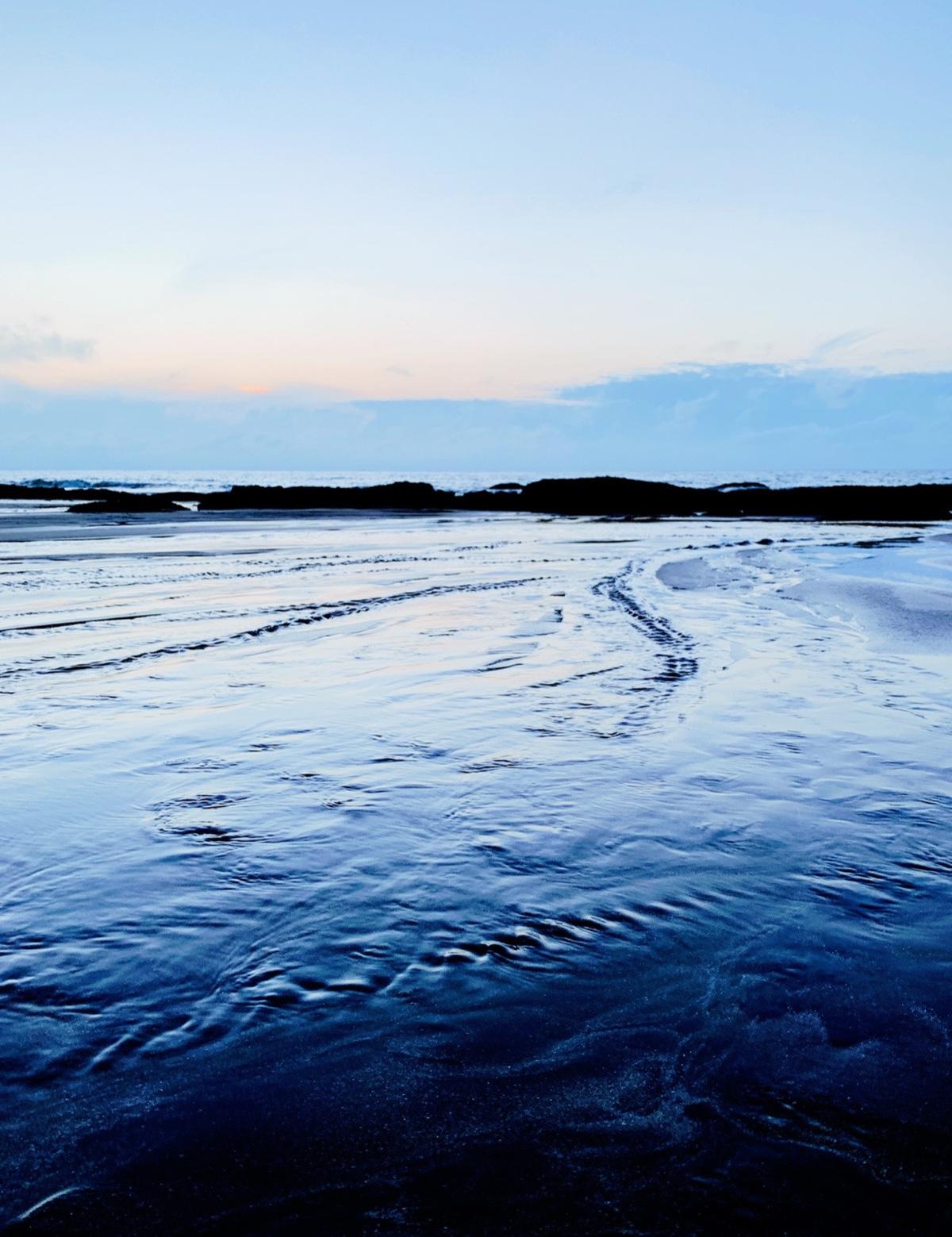沙灘上的尾韻是曖昧的上弦月。風吹樹梢,夜漸濃重,湛藍被星辰拖曳而逝,而眼睫上的織女星已然閃爍。
