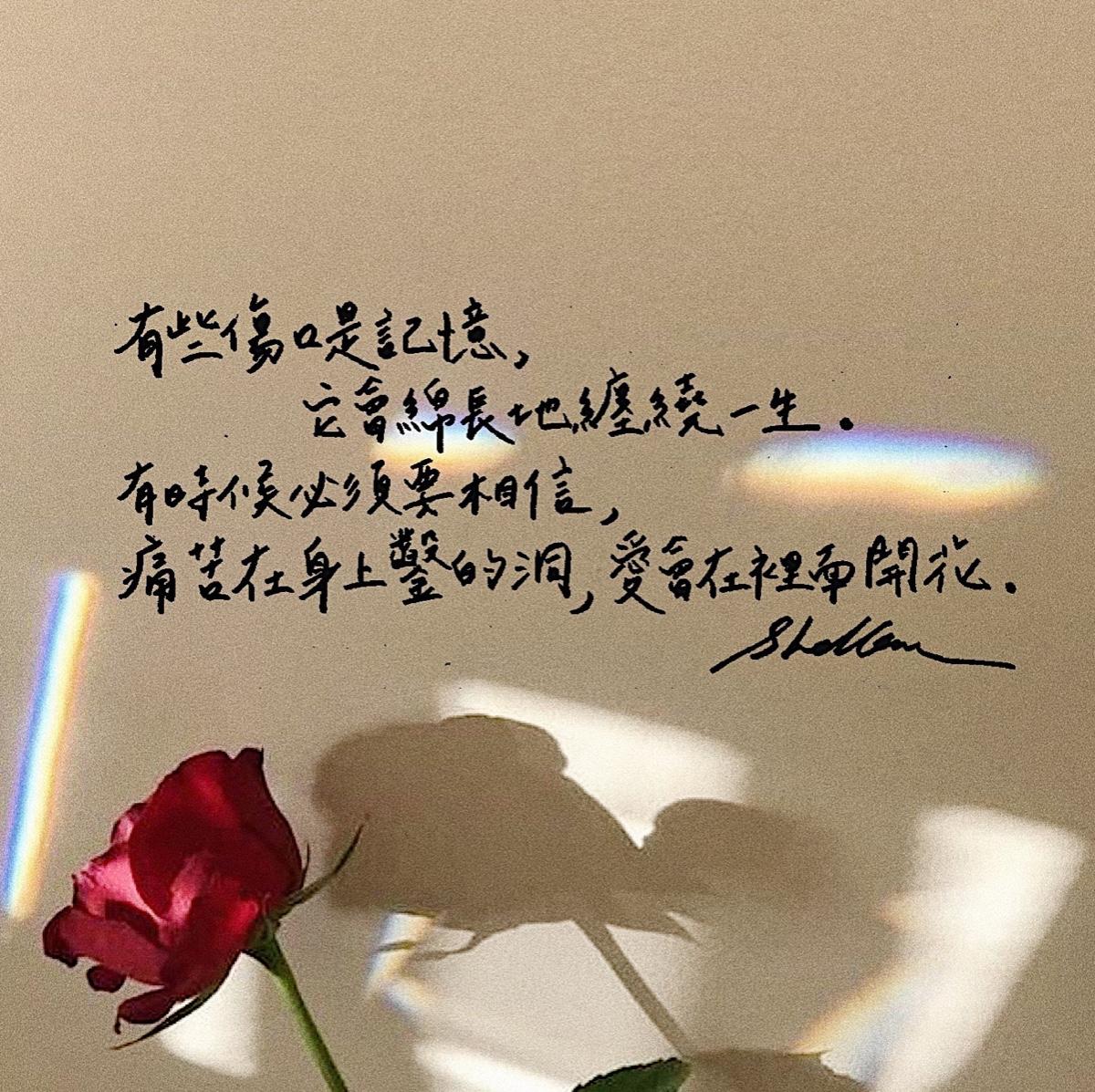 有些傷痕可能一輩子都忘懷不了,一輩子都無法癒合,但謝謝自己,即使傷痕累累,依然努力、勇敢、無畏的走下去。