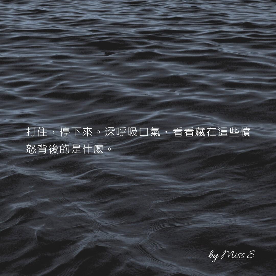 #S隨筆 #MissS的靈感日常 #憤怒 #氣憤 #壞情緒 #懊惱 #憤怒只是冰山一角 #覺察 #恐嚇 #壓力 #不耐煩 #情緒萎縮體 #惡性循環 #變成自己不喜歡的樣子 #情緒勾結 #對外界不滿 #對自己感到憤怒