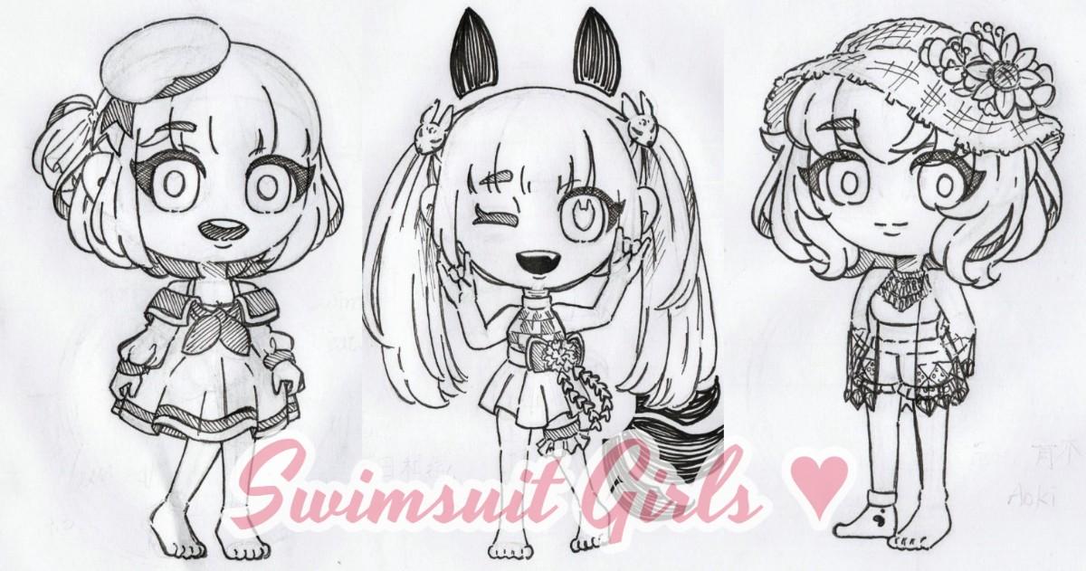 #2020September08Tuesday 繼續~放上女兒們的服裝😘😘😘 (快開學了(´;ω;`) #Swimsuit#水著 #啊綸の兒女#須美績#櫻田和織#青木里葉 #Original#OriginalCharacter#原創#原創人物 #illustration#插圖#插畫 #我是手繪派#alun1028
