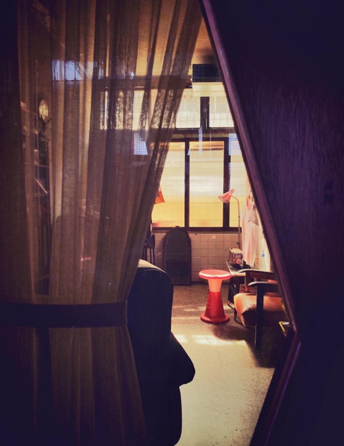 下午兩點的台南陽光,潑灑得直爽而狠辣。但透過門口的紗簾望進室內,卻是那樣的好看溫柔,連塑膠圓凳都顯得有氣質了
