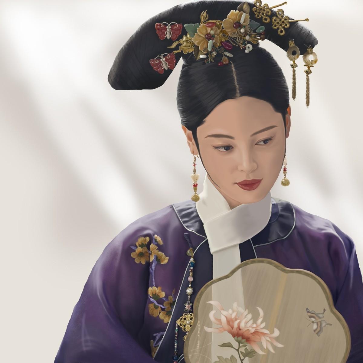 這幅真的是畫了好一段時間,因為細節實在太多了,雖然有劇照做參考,但還是需要思考這個材質該用什麼筆刷或是什麼畫法,像是寶石的光澤、金釵的質地、或是刺繡的繡法該怎麼呈現,一個小頭飾可能就要來來回回修改個好幾次,所以常常會處於《畫的好累啊不想畫了啦🔁啊畫好了好美好有成就感啊》的循環狀態😀
