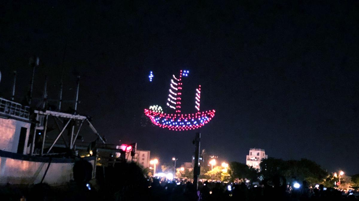 先來貼手機拍攝那突然出現的無人機表演,