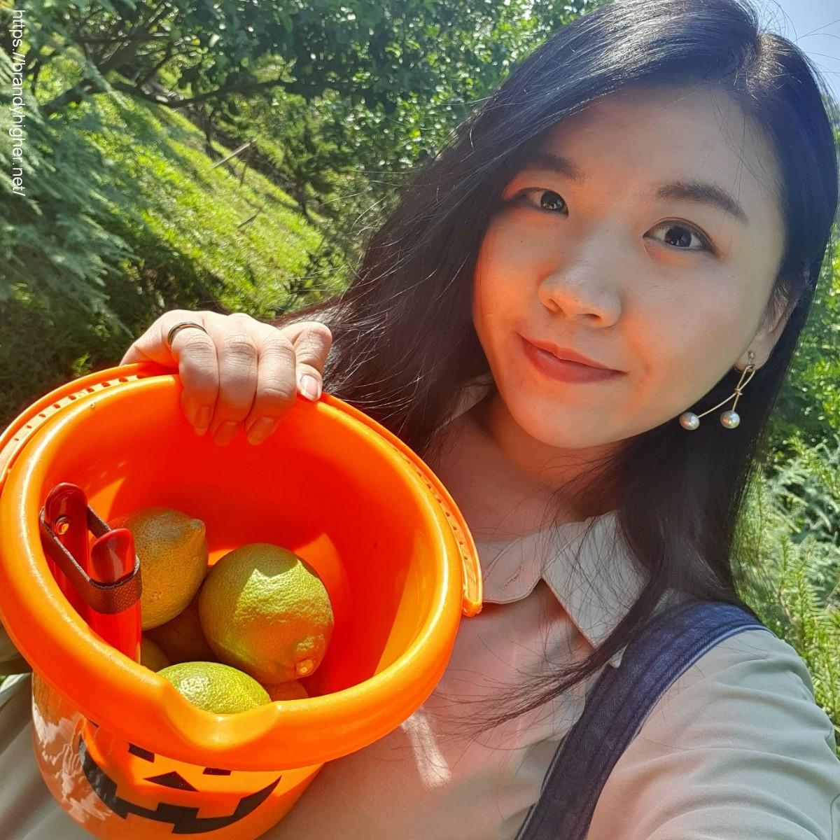 農場主人會講述下檸檬、洛神花、柑橘的位置(很多客人會採摘柑橘誤以為是檸檬,大小差不多),一張採果券可以採摘六顆檸檬,香水檸檬大概是手掌大小,果皮上就可以聞到淡淡的香氣,但聽說果肉並不多。