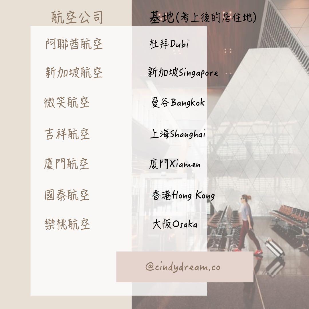 你/妳會因為派駐基地而選擇哪一家航空公司嗎?✈️ 左滑是曾經在台招募的外商航空公司基地,當然如果可以接受到當地生活而選擇該航空公司,也要考量以下因素: 1.航空公司是否有提供住宿? 2.航空公司有提供租屋津貼嗎? 3.當地文化是否適合你? ⬇️底下留言互動,你還會考慮哪些因素?而選擇該家外商航空呢? ________________________________ ⚠️ 追蹤➡️ @cindydream.co 不會漏掉任何『空服職涯內容』、『航空訪談系列』以及『自我成長』相關內容唷! #心心聊空服 #基地 #base #外站 #上班地點 #航空業 #外商航空公司 #空服員 #選擇 #面試