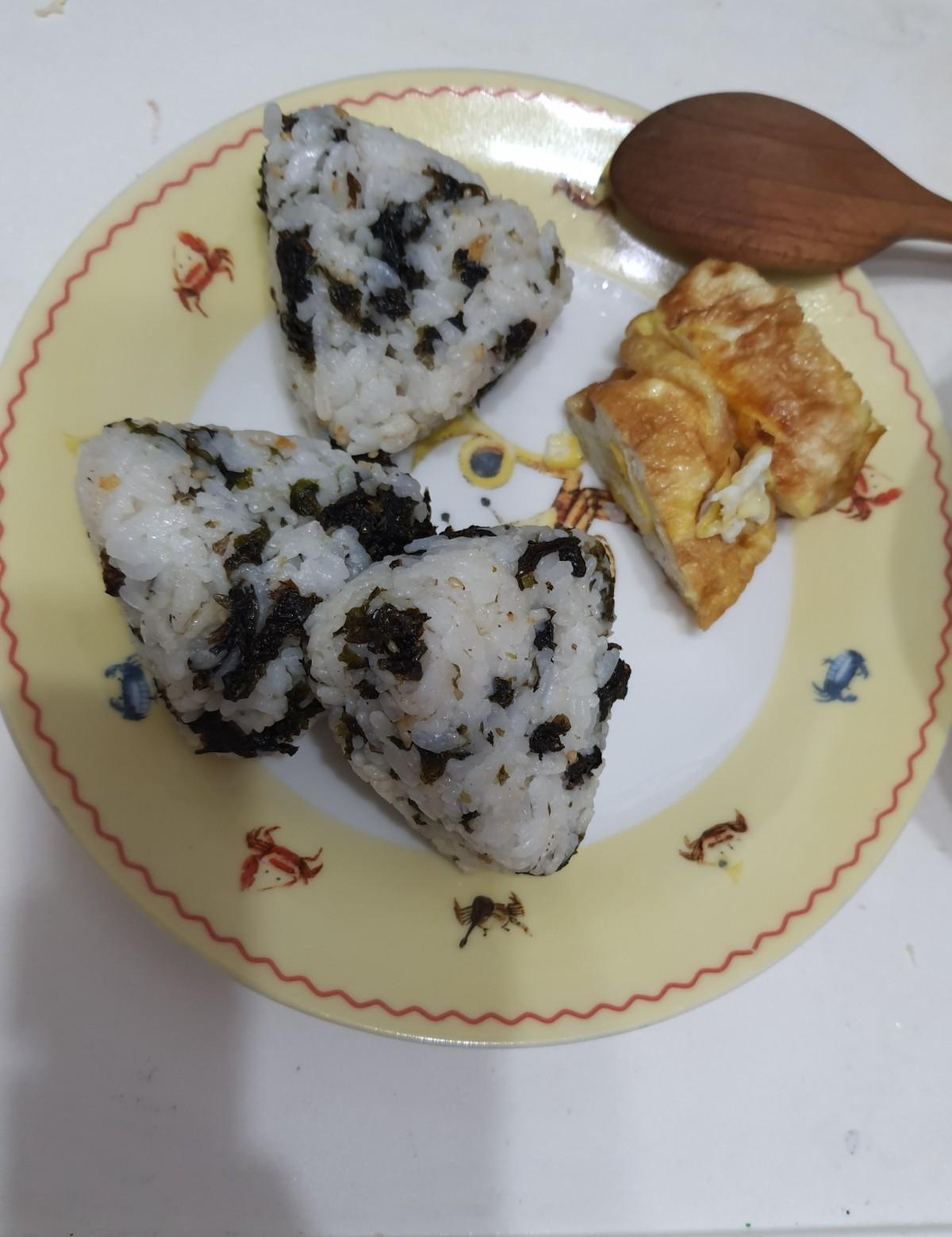 Breakfast 1 / 410/26 Monday 月曜日 Peter Penny 雙P早餐~海苔酥飯糰,味噌湯,台式玉子燒海苔酥相信每個孩子都很愛,拌飯,麵都很適合。#雙P早餐 beauty832地方媽媽~老靈魂👧