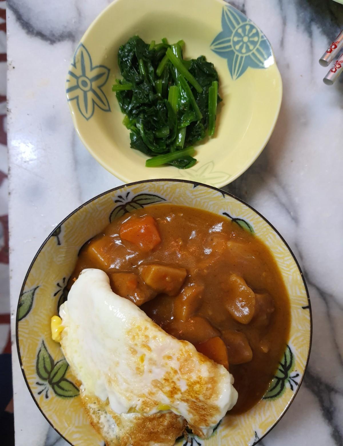 Breakfast 1 / 411/09 Monday 月曜日Peter Penny 雙P早餐~摩斯猪肉咖哩飯,荷包蛋,炒波菜好吃咖哩,早午餐好幫手,妹妹認證。#摩斯猪肉咖哩#雙P早餐 beauty832地方媽媽~老靈魂👧