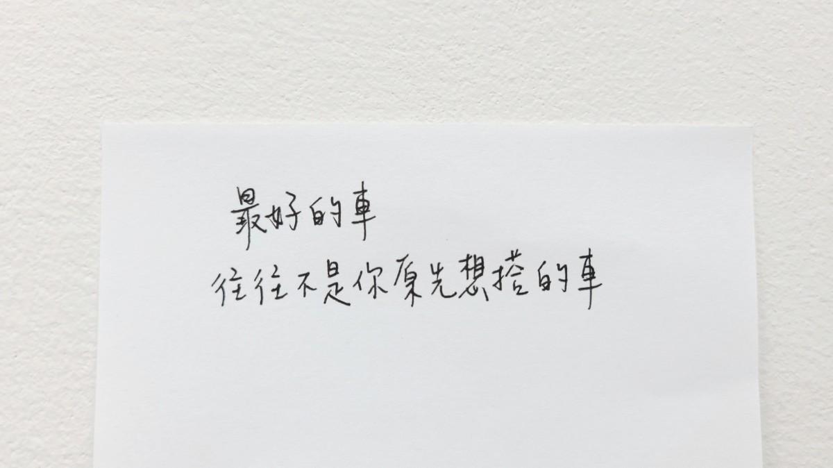在這樣的心情之下就會想到陳浪的這句話,最好的車,往往不是你原先搭的車。套用在生活上似乎也非常的合適,最好的決定往往不是自己原先所做的決定,而是出發之後,隨著不同狀況而作出的應變。