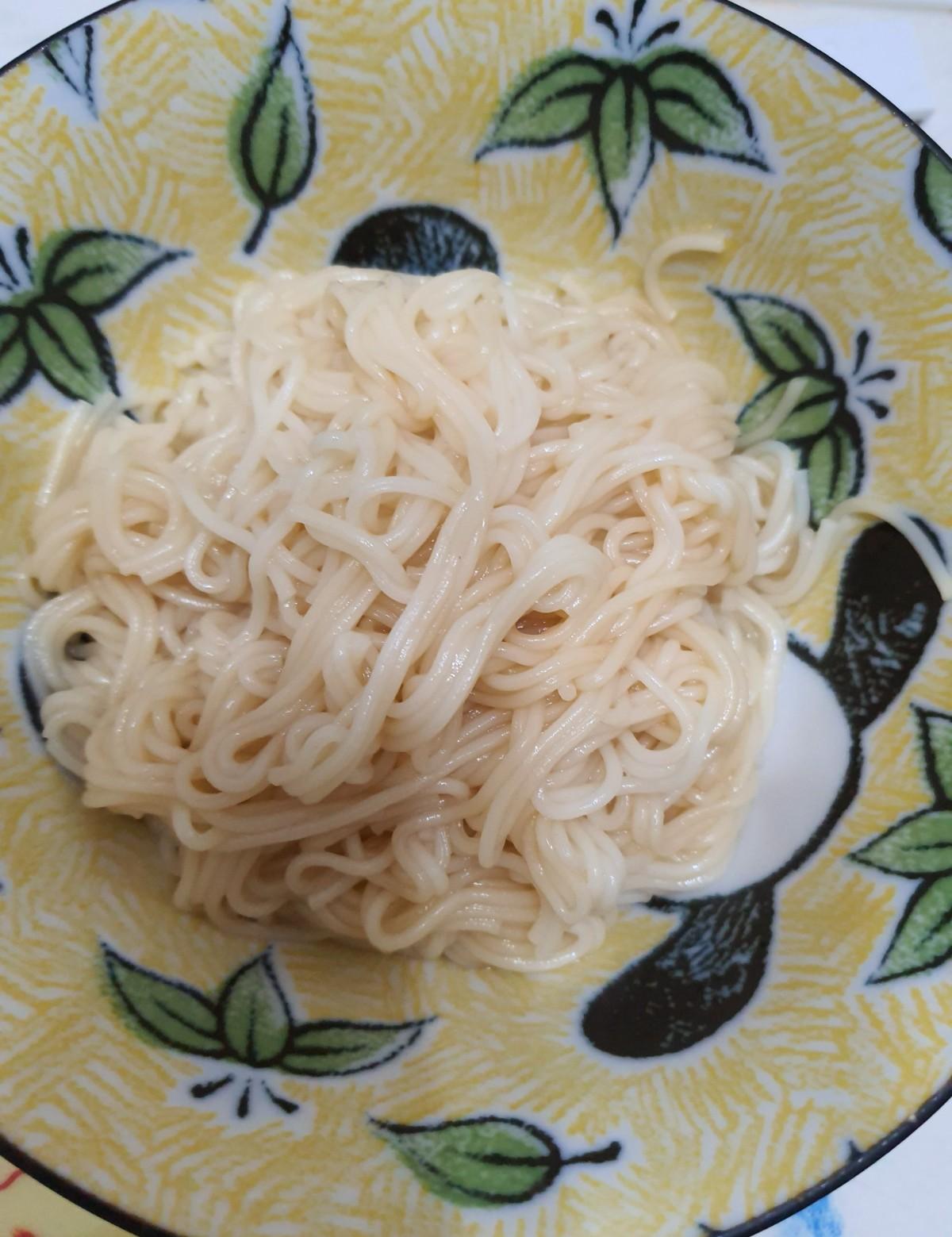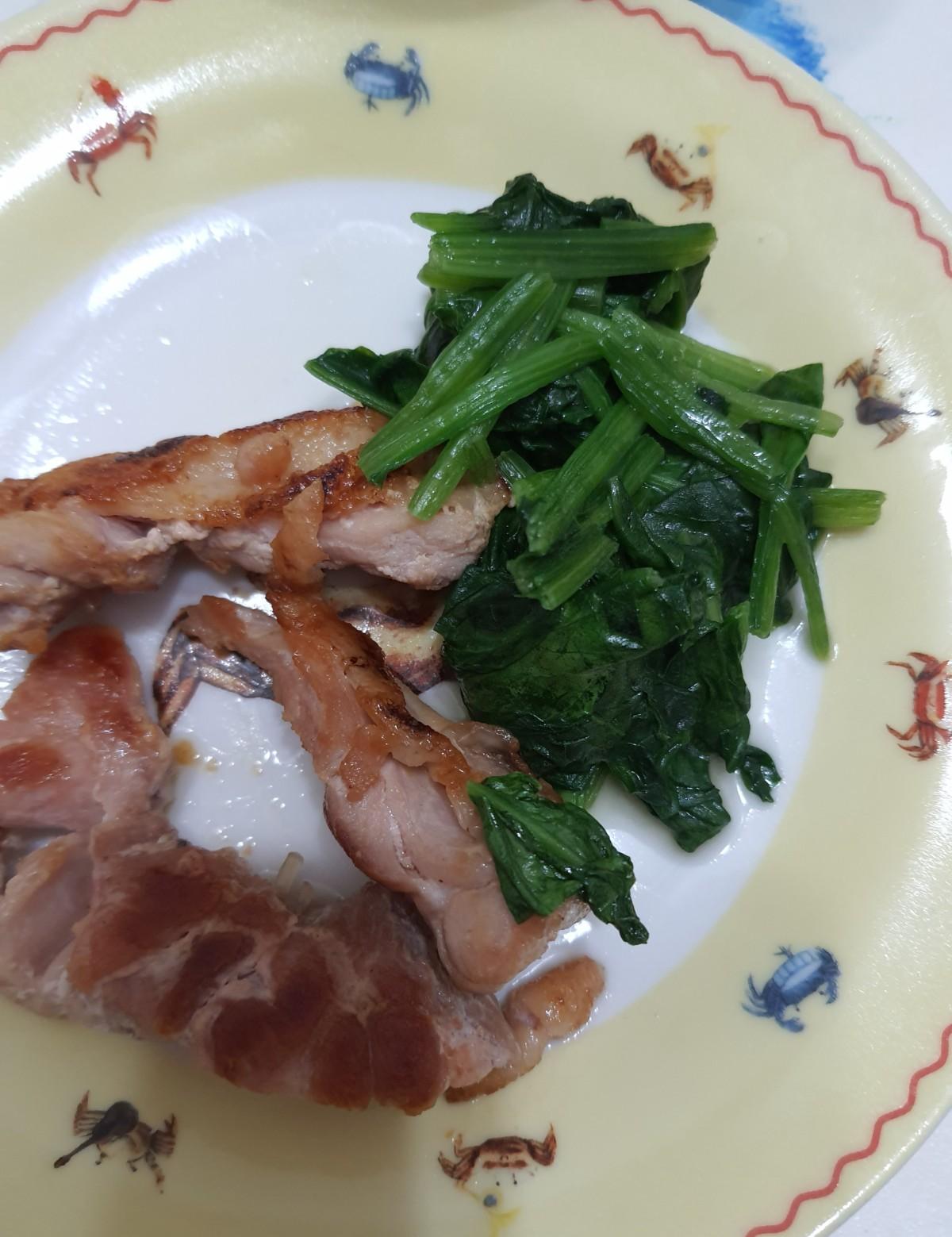 雙P早餐~沾醬乾麵,雞腿排,炒波菜。