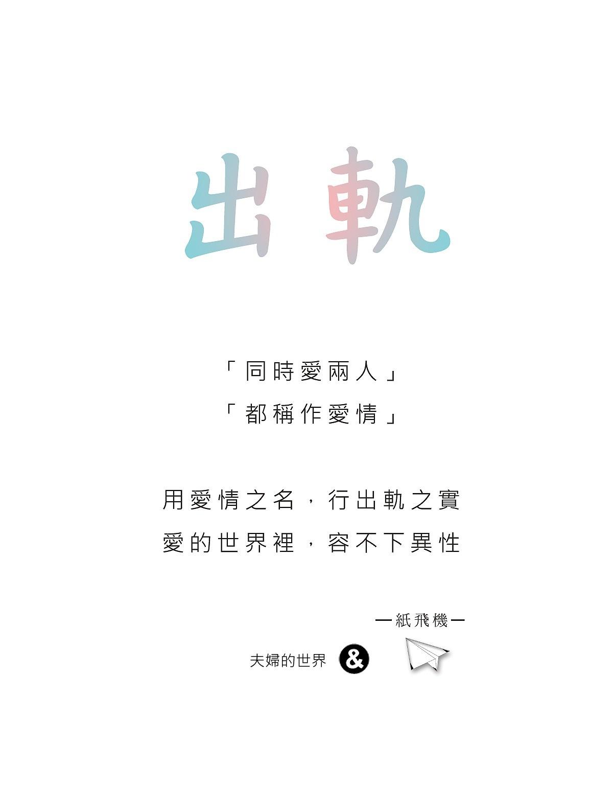 愛情的世界,容不下另一個異性,出軌就是出軌沒有所謂「犯錯」就想要帶過這一切