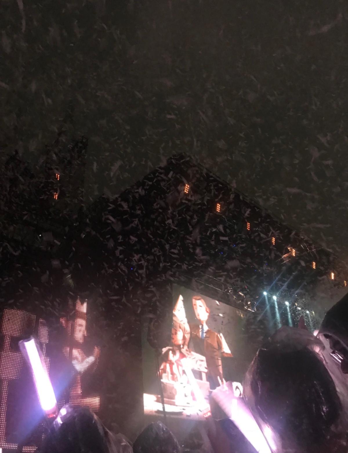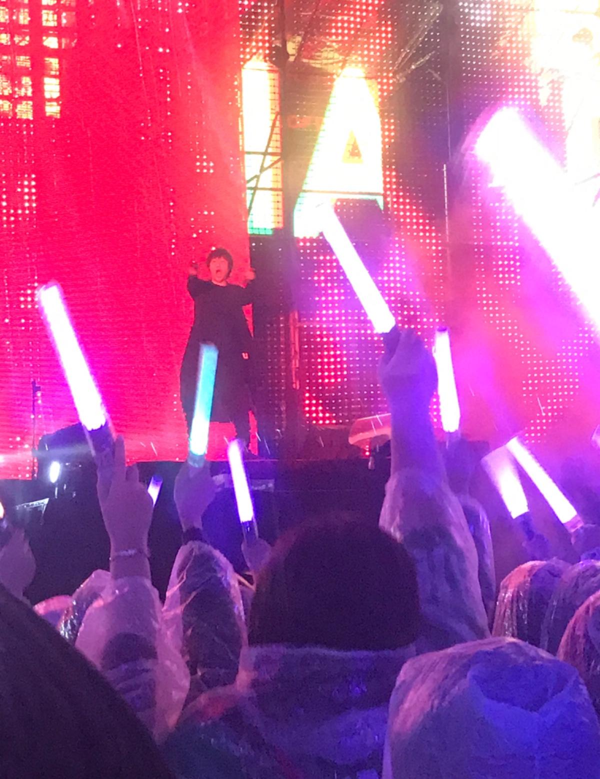 好不容易搶到第六排的位子,第一次離這麼近,然後就下大雨了ˇˇ