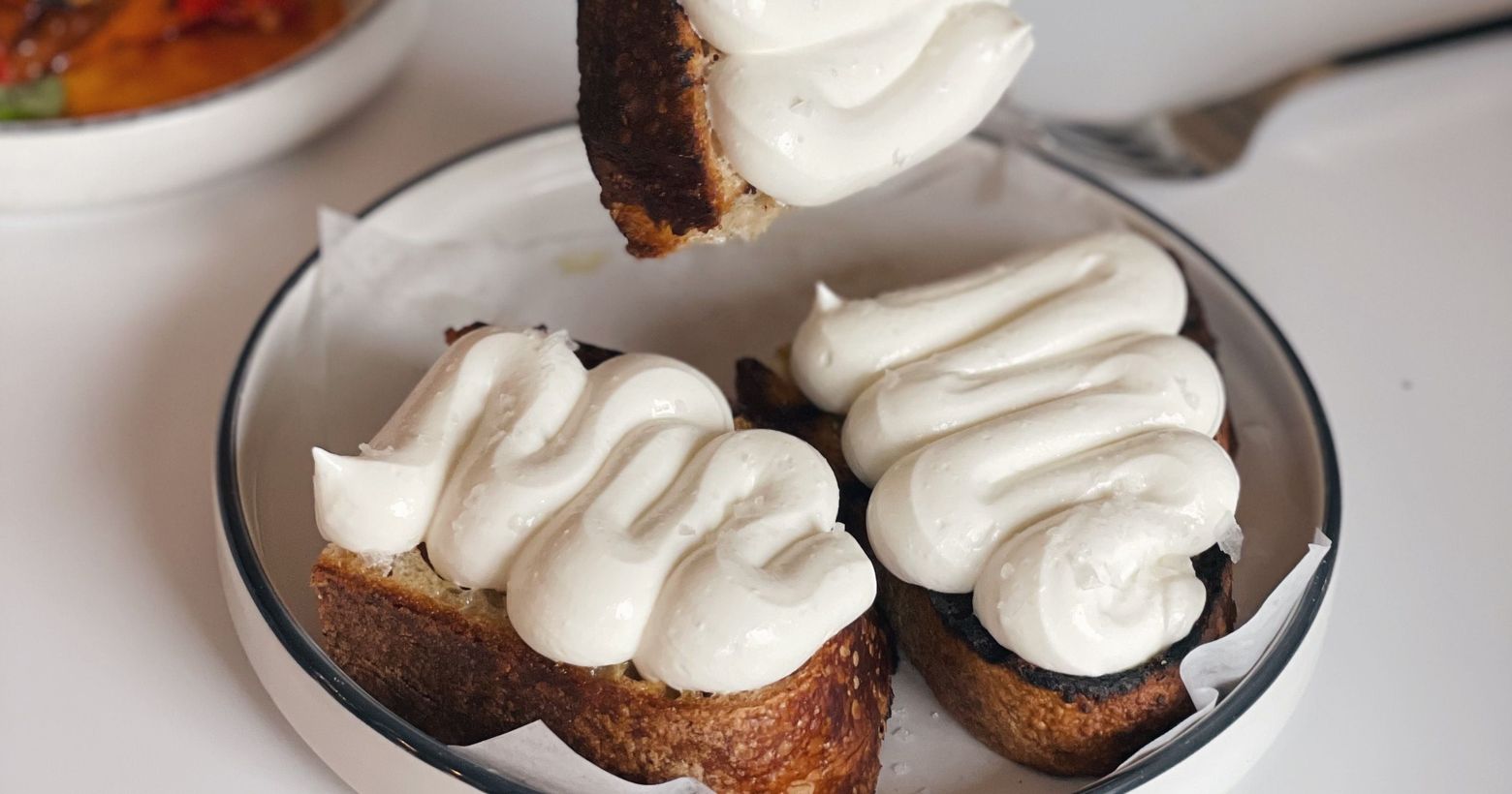 阿米自己都會回烤過一遍,將表面噴點水烤個數分,讓口感多了味酥鬆硬脆,再抹上冰涼順化的cream Cheese,讚喲