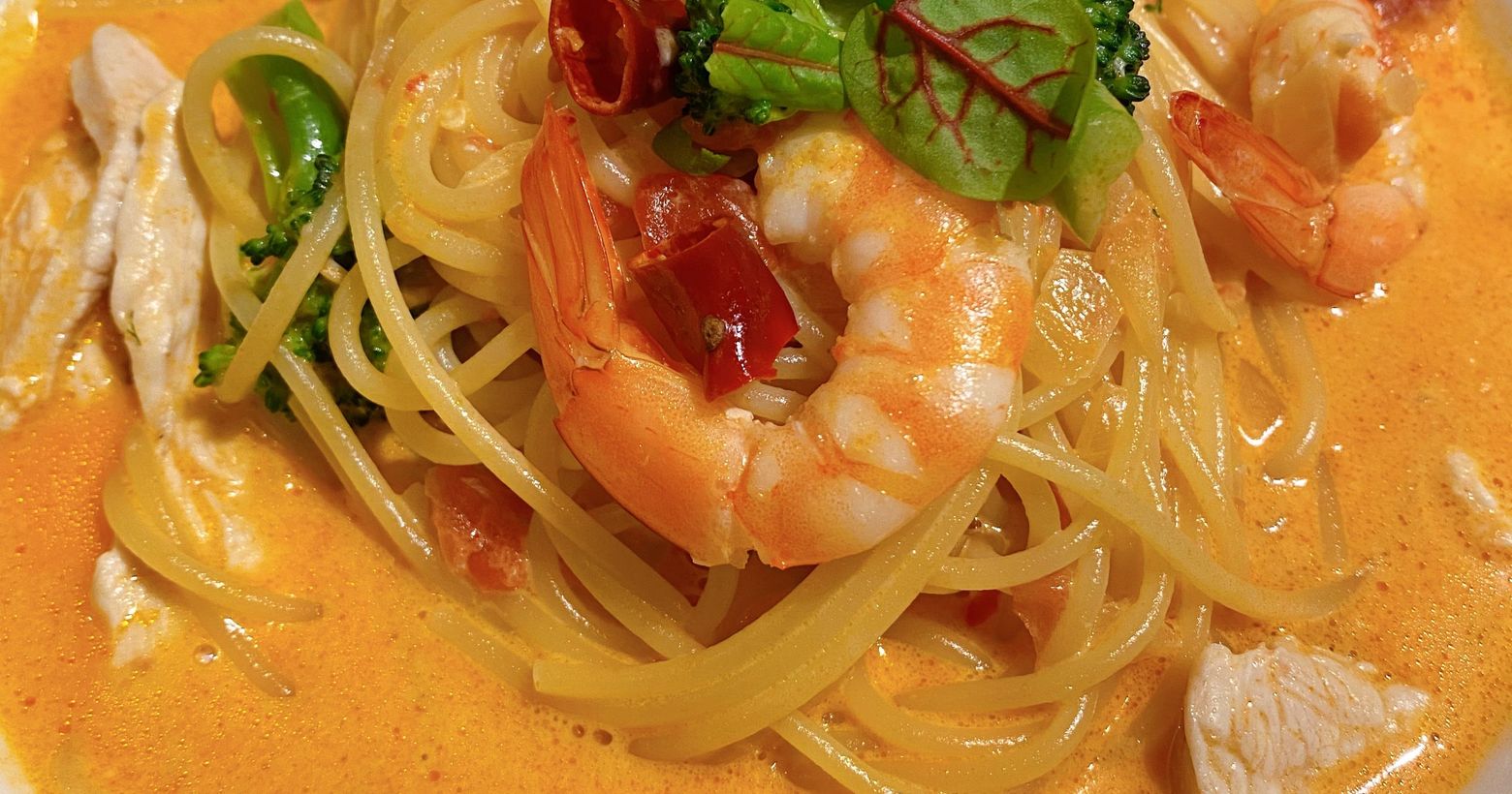 剛端上桌就聞到好香好香的擔仔麵味道。