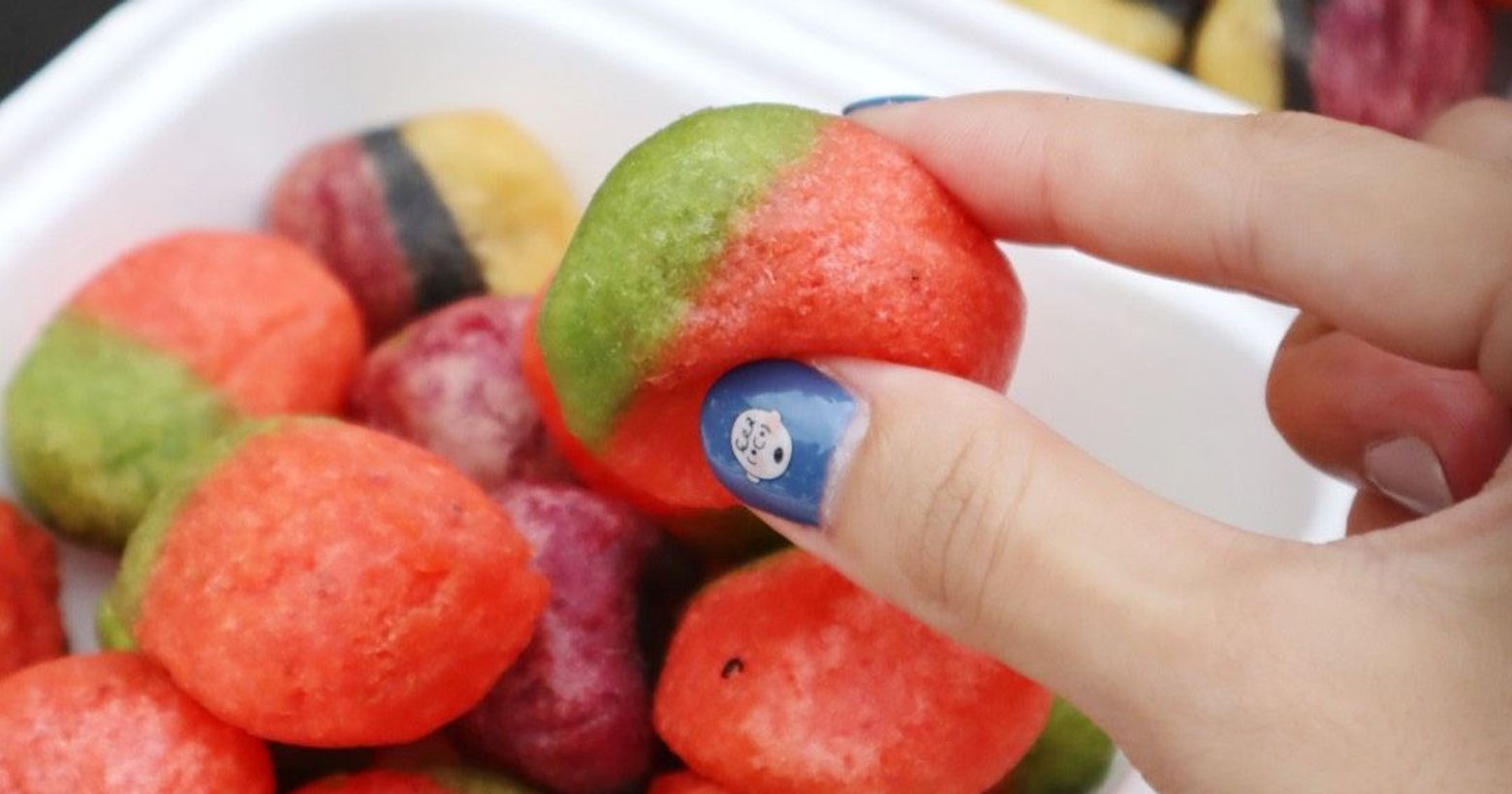 芒果奶霜包裹蜜桃果凍,吃起來酸酸甜甜,不過中間的果凍有一點點化學感