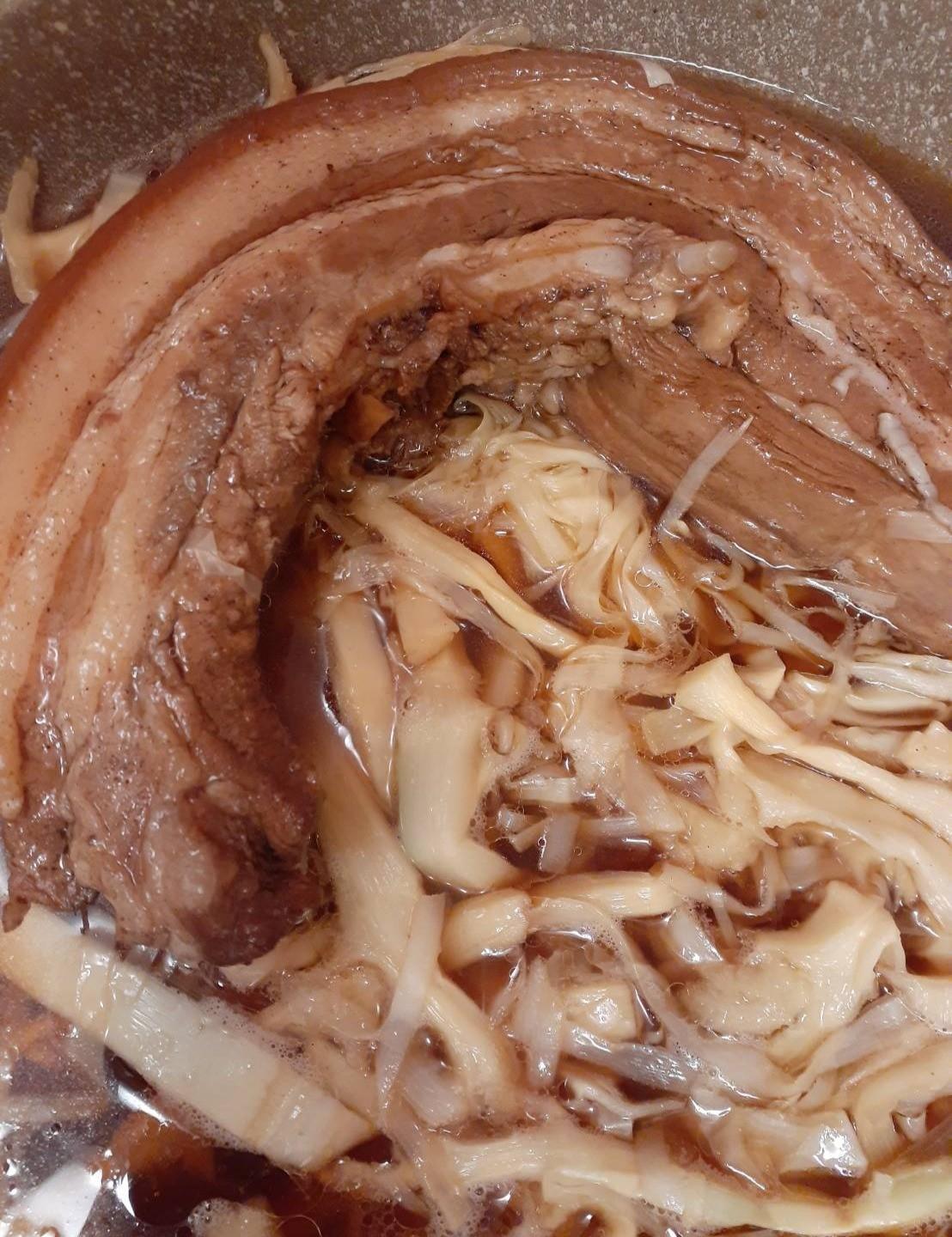 接續著處理五花肉,五花肉一樣川燙撈起再次用水洗淨,我喜歡用整條五花肉待煮成半成品後再用剪刀 剪成塊。 現代鍋具幫人不少忙,我使用再煮燜燒鍋處理五花肉,再煮燜燒鍋讓五花肉在鍋裡自動煮好等我去找它...當我再去找五花肉時代表著就是要撈起它,讓它的價值在提升。