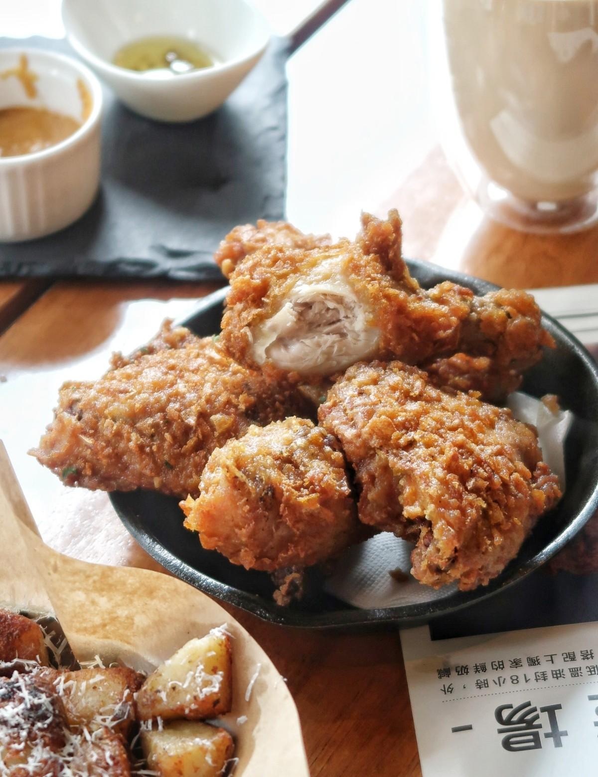 炸雞有3、5、7塊,現炸外酥脆內多汁,適合當嘴饞或是開胃的小餐點🍗煎馬鈴薯塊非常香口感極綿密,想要清爽一些可以點份沙拉,有牛排、雞肉跟綜合菇可以選擇,醬料也有多樣可以挑,絕對找得到適合你的口味。和風柚子非常清甜我很推薦👍🏻