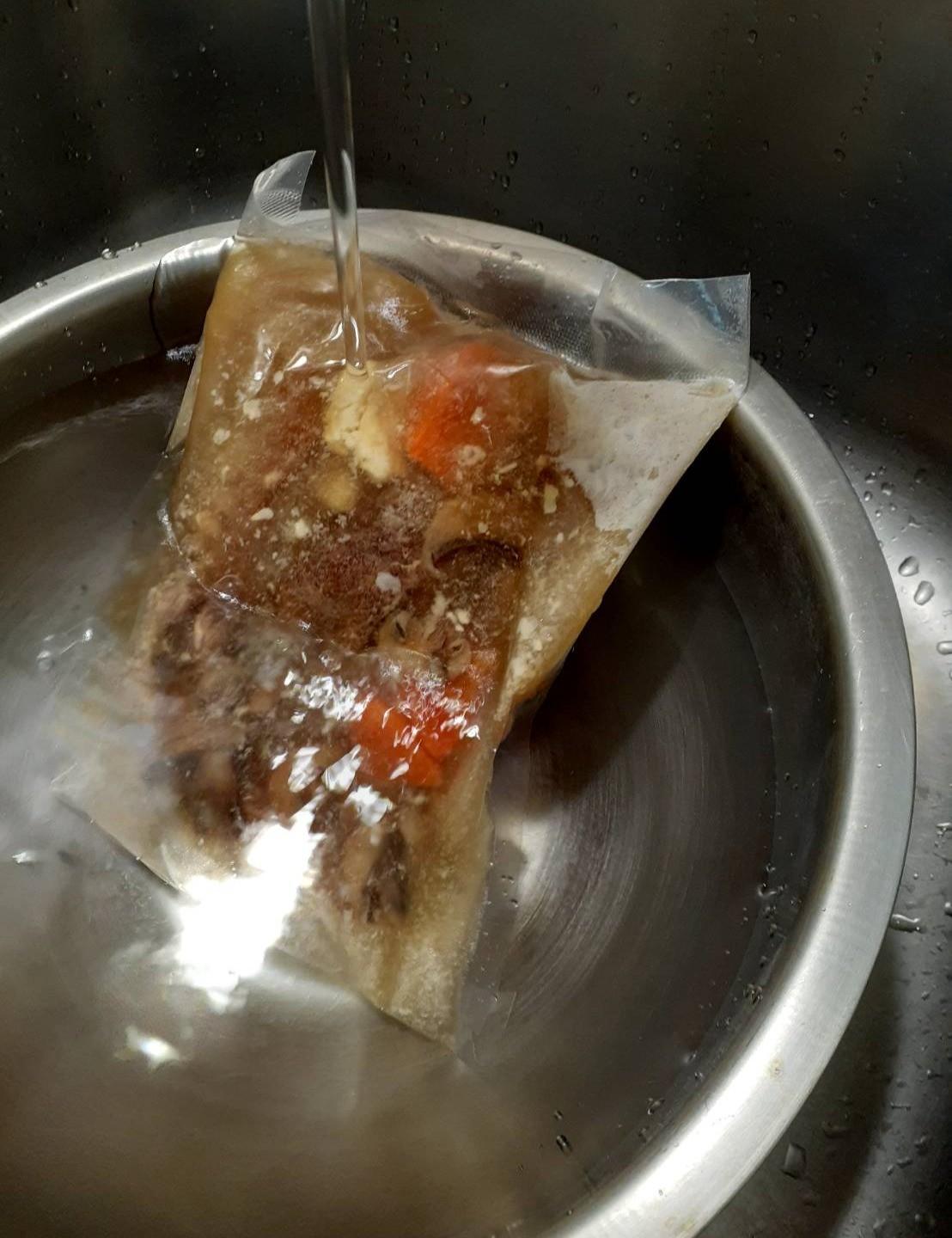 現代人對於冷凍食品越來越能接受,在市面上眾多品牌下消費者的要求也是希望能買到價實料實的冷凍食品。開箱《築水引 》帝王養氣肉骨茶麵看到的是業者細心的把肉骨茶跟麵條分開包裝,我選擇用隔水快速解凍的方法退冰冷凍肉骨茶包,但是麵條是採用不用退冰直接放入鍋內和肉骨茶包一起煮。
