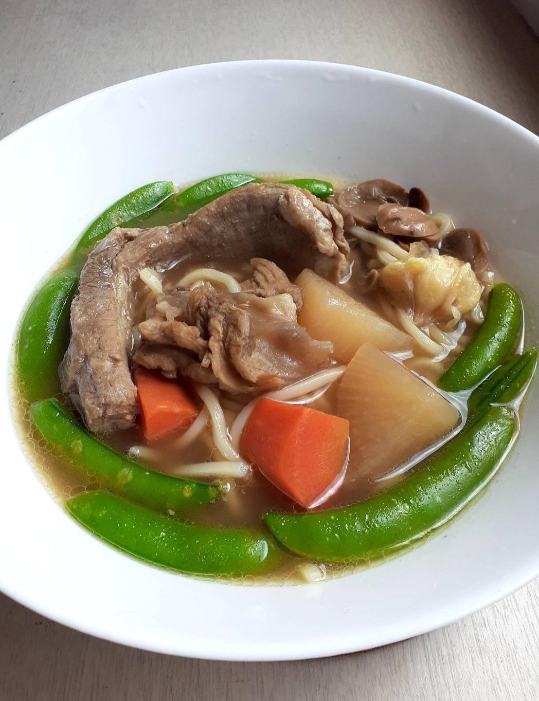 雖然《築水引 》帝王養氣肉骨茶裡已經附有紅白蘿蔔和蘑菇,大嬸我每餐堅持一定要有綠色蔬菜,看著爐上的肉骨茶快煮好時就把幾個甜豆筴給丟進去,這樣的一鍋該有的就全有啦。