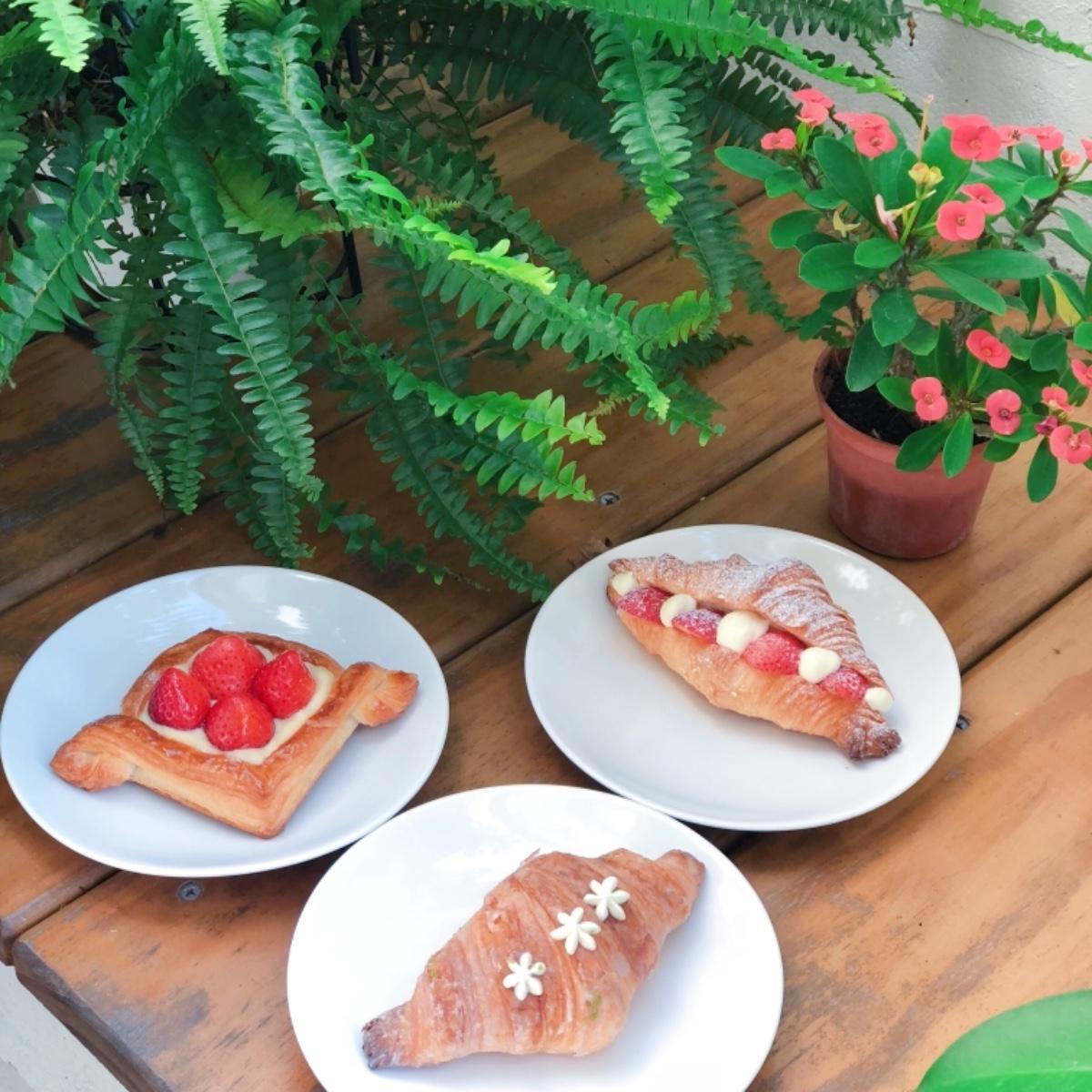 草莓系列真的很推!不會太酸的草莓🍓搭配上卡士達醬吃起來酸甜酸甜,重點裡頭的餡料吃起來不會太甜膩算是很剛好的喔!吃起來口味上我覺得蠻豐富的,加上外層酥脆的麵包我覺得很可以👍