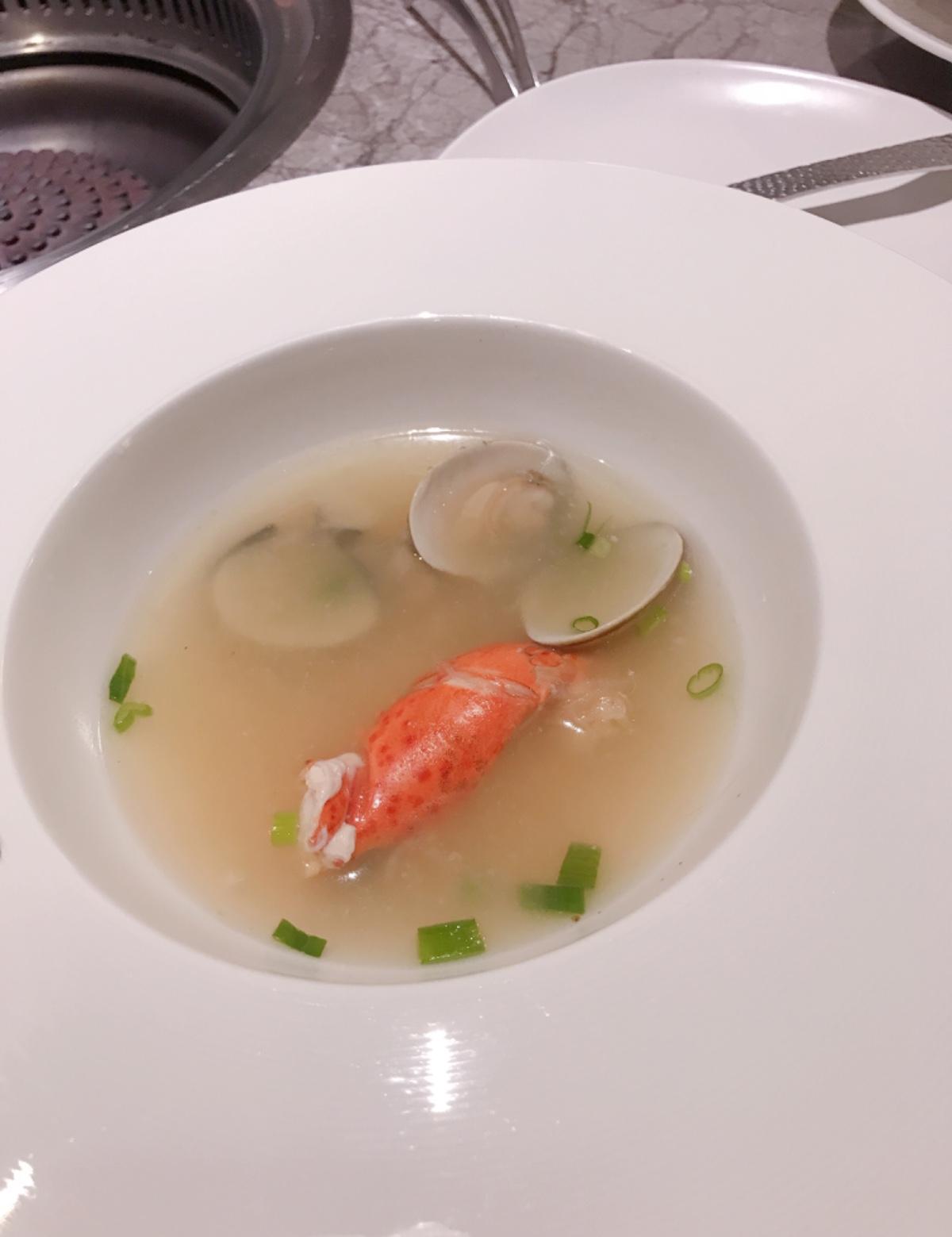 而且無限續點吃到爽 這道豪華極致的沙拉不是主菜是前菜哦 🥣清薑蛤蠣龍蝦湯