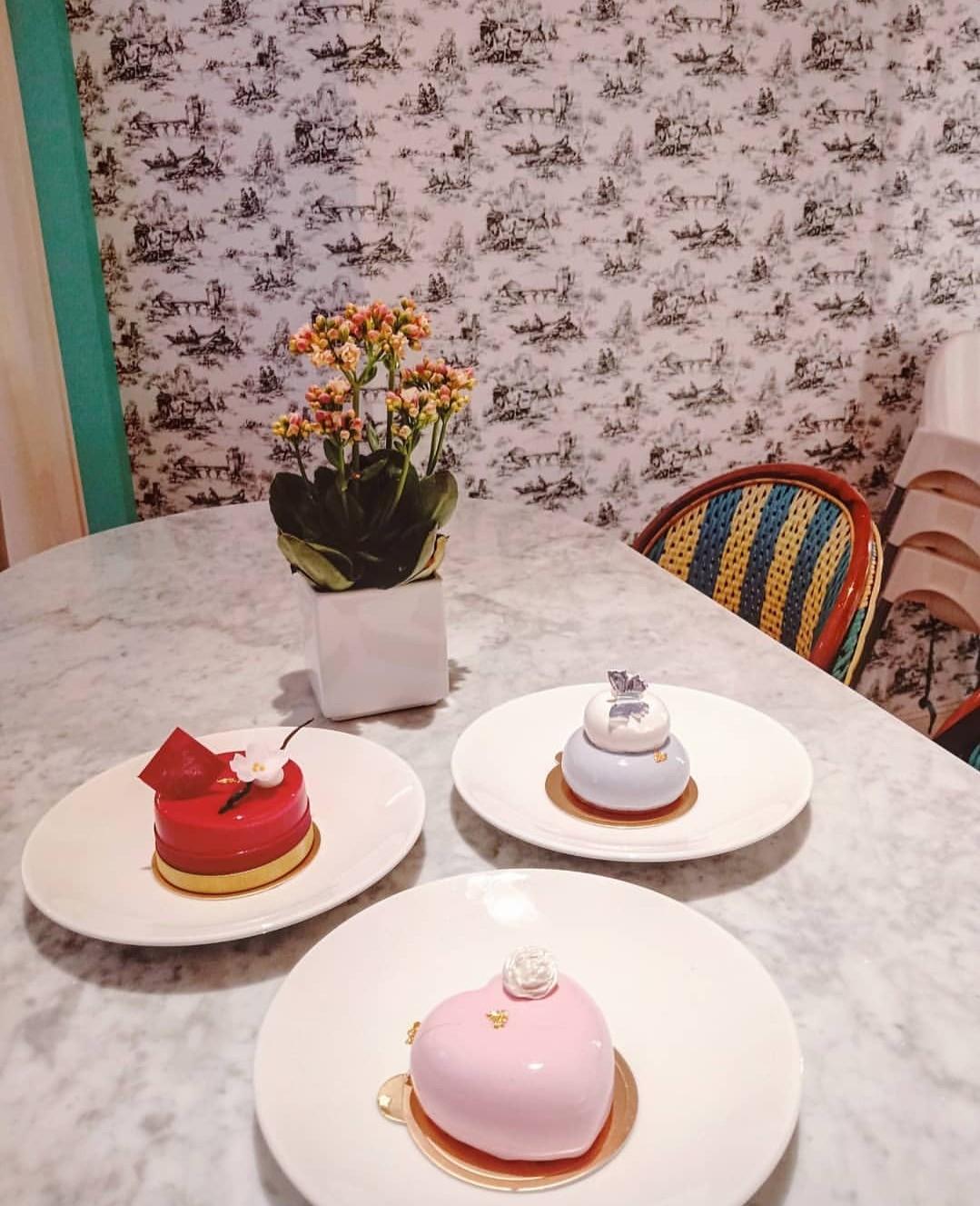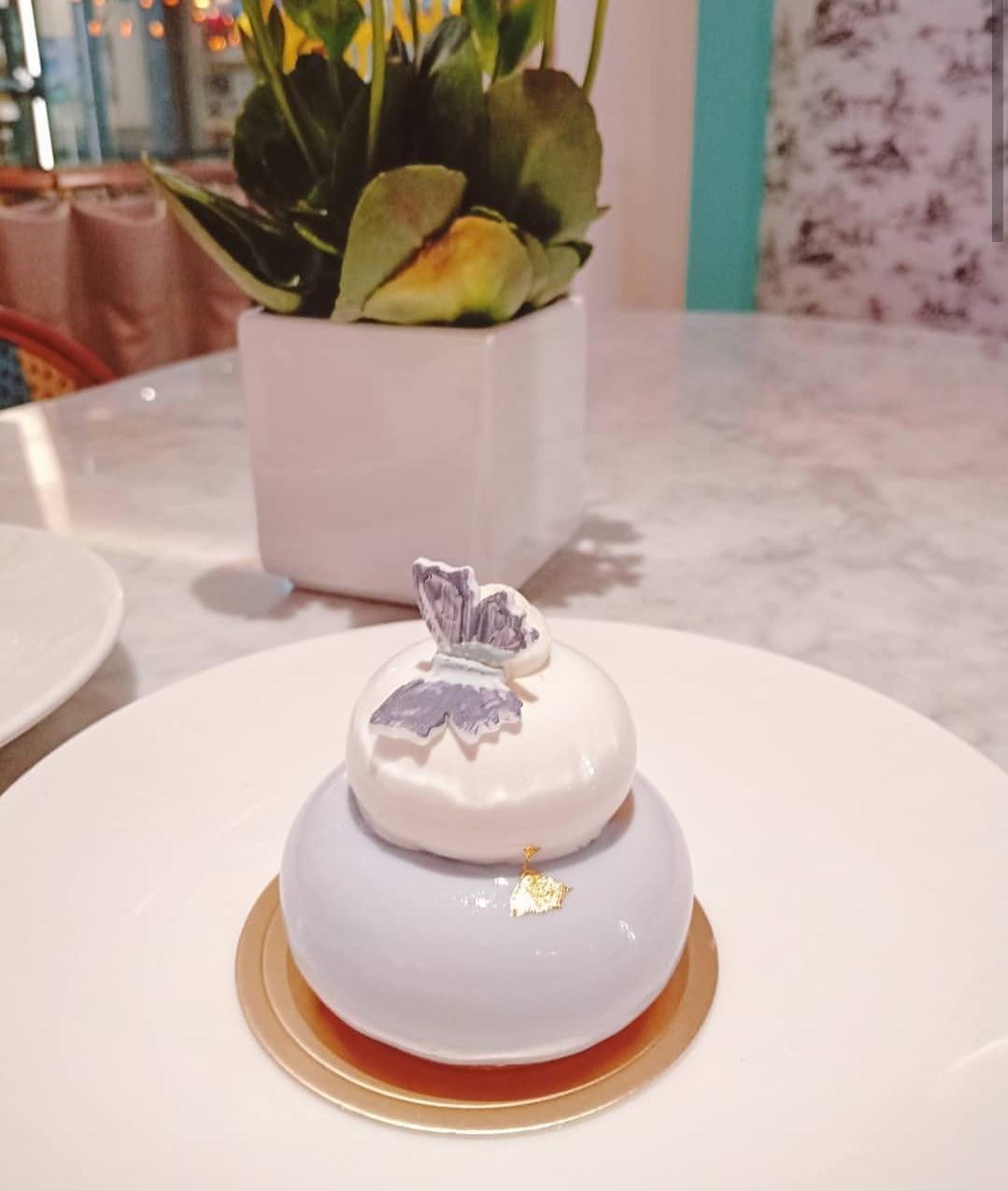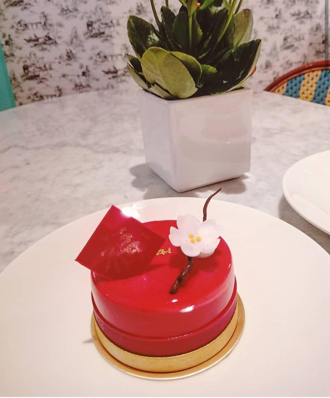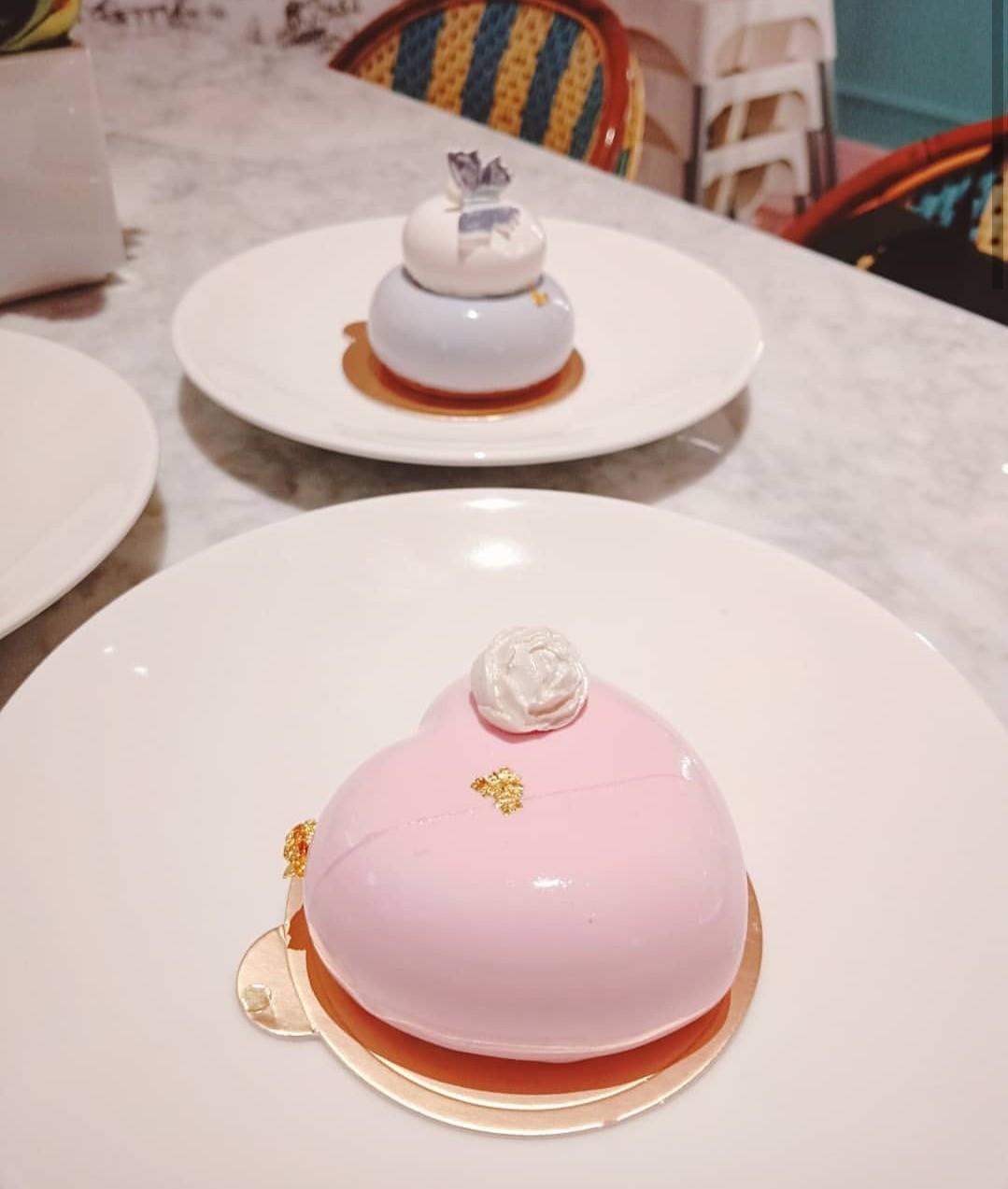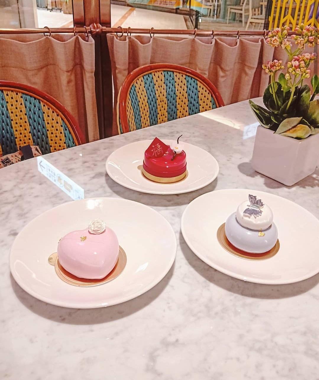 文華東方的精品蛋糕✨🍰 好愛甜點 #我的粉紅情人 $250 情人節限定 覆盆子跟蜜桃口味 內餡是接骨木花綠茶慕斯和開心果海綿蛋糕 底部是檸檬海鹽脆餅 #福至 $250 新年限定 口感有鴛鴦奶茶跟咖啡 #東方美人 $250 鏡面蛋糕都好美💕💕橫切面內餡也是紫色的 每種都很好吃