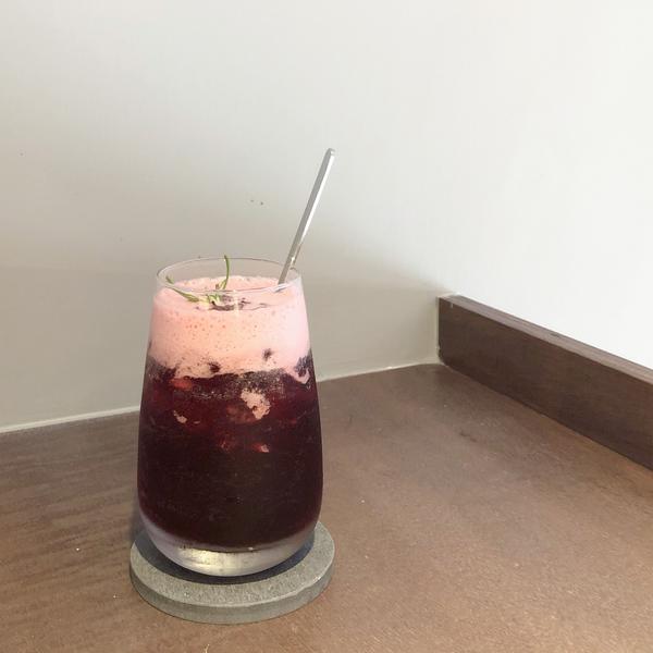 淡雅的紫色真的很夢幻,喝起來甜度適中,搭配甜點也不會過膩,還吃得到藍莓🫐顆粒,真的清涼又降暑氣。