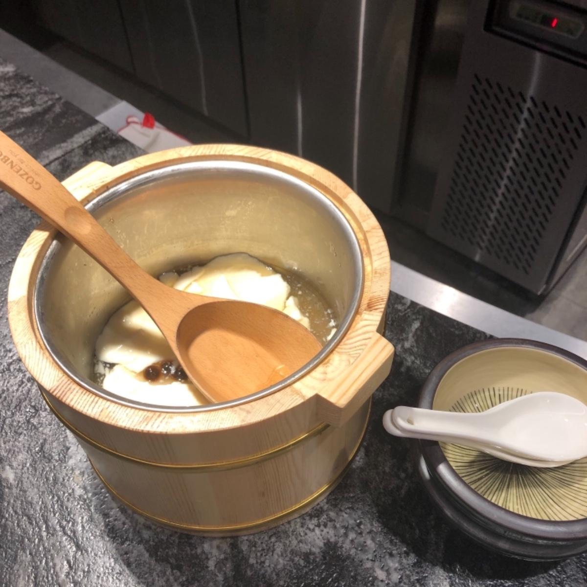 然後甜點是用木桶裝的(超浮誇XD),那天提供的甜點是珍珠豆花,嗯就是普通的豆花🙃