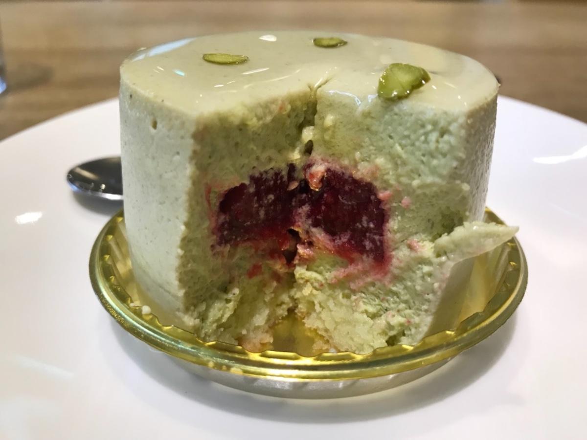 同事非常熱愛的甜點店,機乎天天報到!真的有那麼好吃嗎?抱著懷疑🤨前去怒吃👍到店裡她們感覺一副要打烊似的!覺得服務品質與裝潢不符(._.)是生意太好了嗎?(裡面沒半個客人就是...)想說來了就點吧!我不喜歡吃過甜的蛋糕,選了翡冷翠(開心果慕斯與覆盆莓凍搭配)真的好吃😋不甜膩!👍瞬間就吃完了!店員應該傻眼吧!剛坐下就要離開了(笑。不過內用有低消兩百還要一成服務費 ╮( ̄▽ ̄"")╭ 實在是太不划算了,下次我會帶走不會浪費摳摳了...
