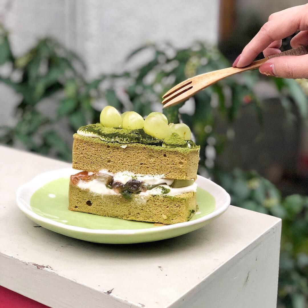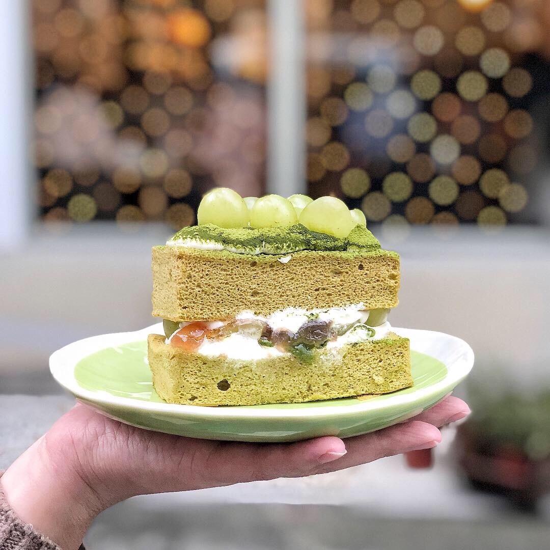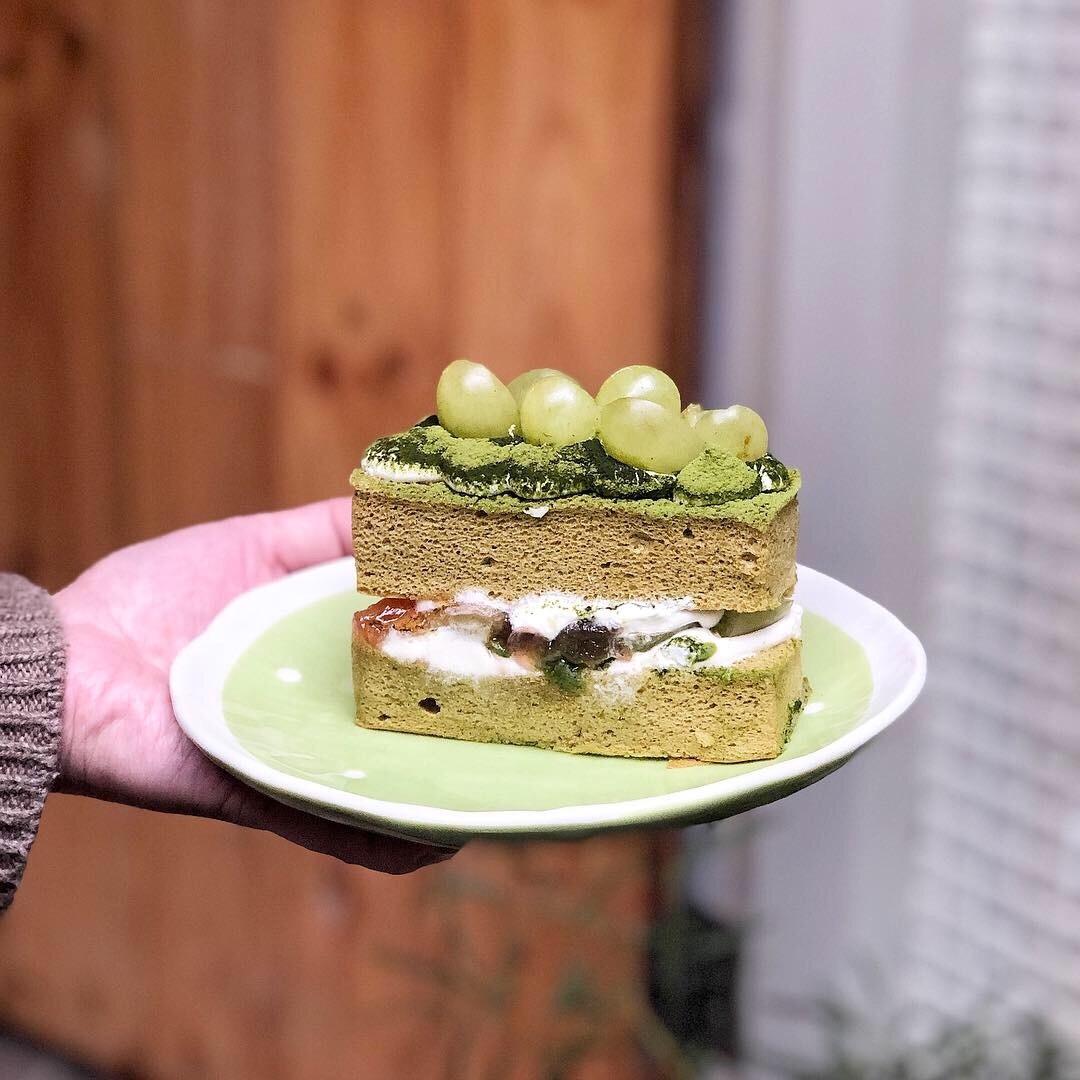 很特別是私藏當然要點起來!!而且我們點了它就賣完了😂,第一次看到抹茶配綠葡萄的組合實在太吸睛,本來也是高度期待結果抹度不夠😩,上面的葡萄吃起來很甜,中間內餡的葡萄🍇果醬更甜!!!真的是甜死人的那種感覺葡萄還用糖水泡過的感覺🤣,我們第一次吃到那麼甜的葡萄都要嚇死了,不知道是不是因為蛋糕會很甜所以店面叫填一點?(不好笑😂),上面的抹茶粉只有吃到一點點的抹茶味但整體吃起來是完全沒有的非常可惜