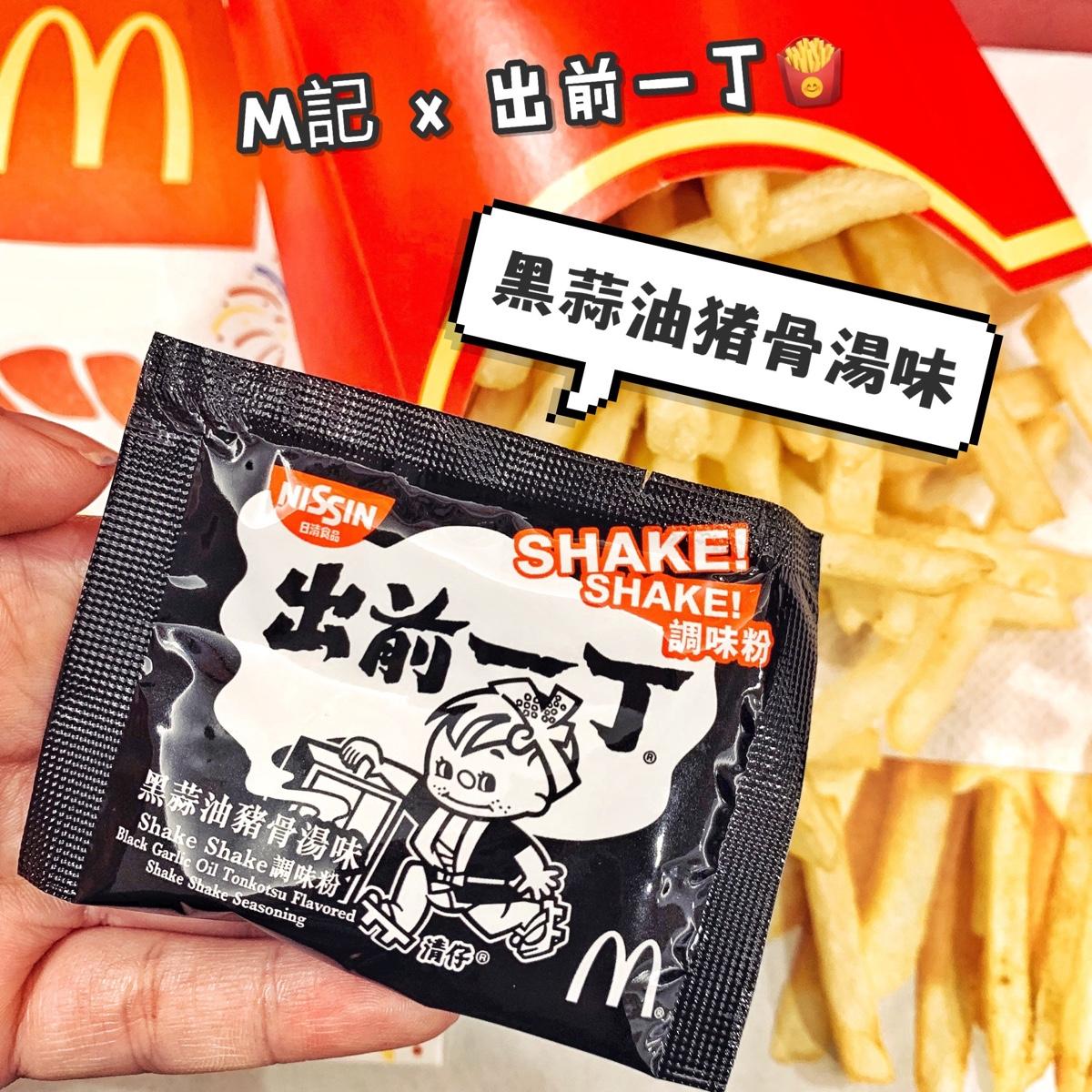 麥當勞又有新搞作!近日史無前例與出前一丁合作,推出黑蒜豬骨湯口味的shake shake薯條🍟
