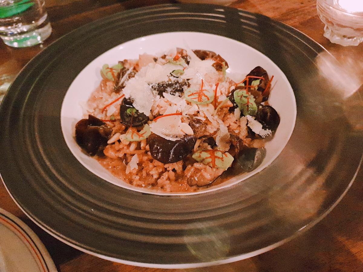 松露野菇起司燉飯與松子木耳-燉飯米恰到好處,一點點米芯的熟度,佐以松露的香氣,令人驚喜的是木耳脆脆的口感,也能和松子那樣的和諧。
