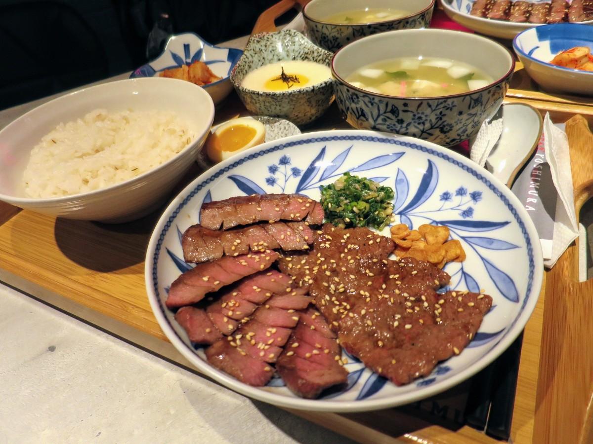 每一片牛舌都是手工切肉,還能依照自己喜歡的口感選擇部位,分為牛舌尖、中段及牛舌根,每種部位都能嘗到不同的口感,第一次來不知道如何點餐的話,小豬推薦 #吉村牛三拼定食 ,三種肉類一次滿足(✯ᴗ✯)