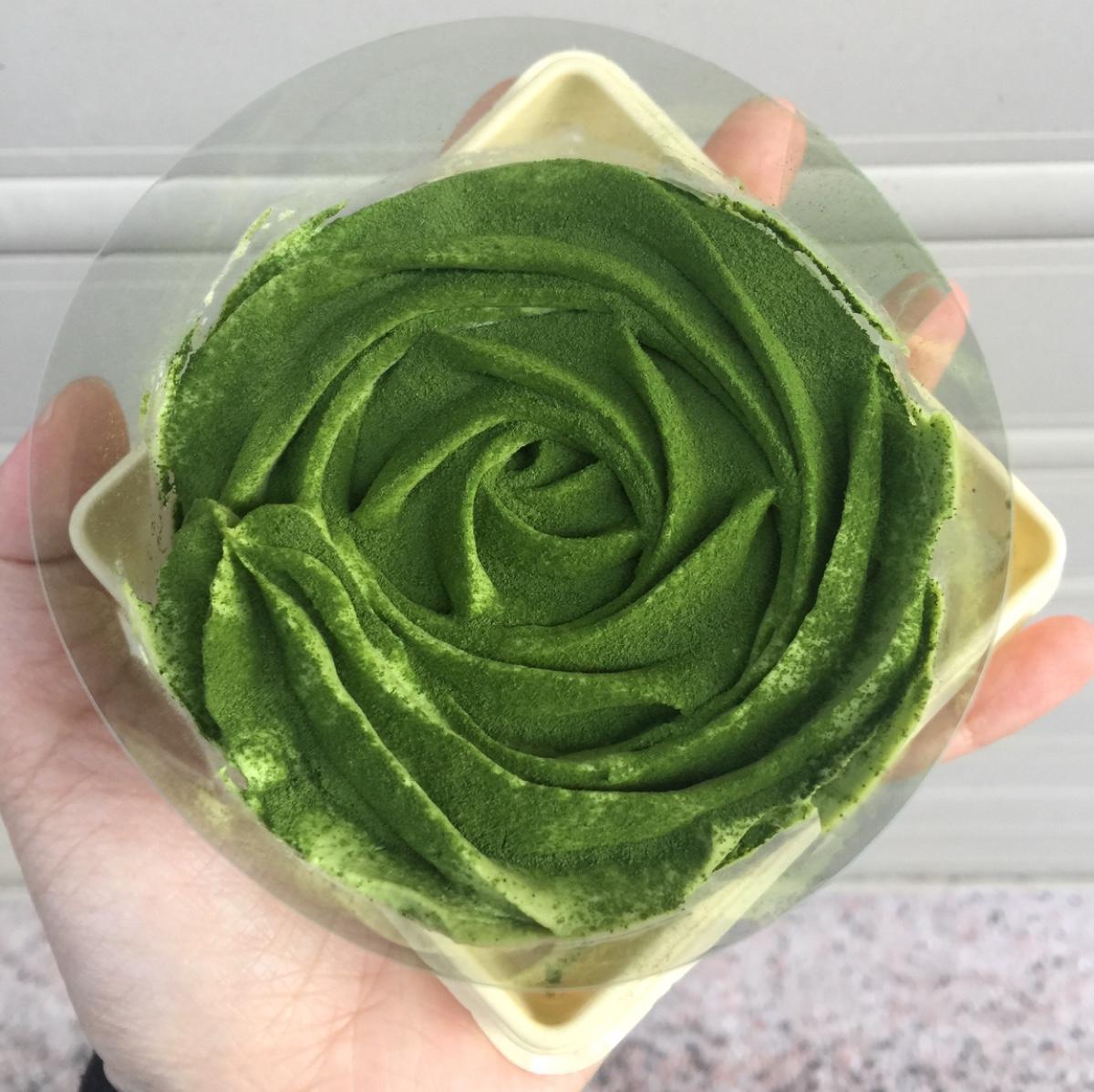 - 之前就有在市集買過 #WACHA 的抹茶泡芙 濃郁的抹茶淋醬真的讓人受不了~吃過的朋友也都說很推👍🏻就是 #抹味十足 的那種~這次看到綠玫瑰🌹二話不說立馬購入~除了上頭灑上抹茶粉+厚厚玫瑰狀抹茶鮮奶油🙈切開來雙層抹茶蛋糕中 還夾了一層濃濃的抹茶醬>///<
