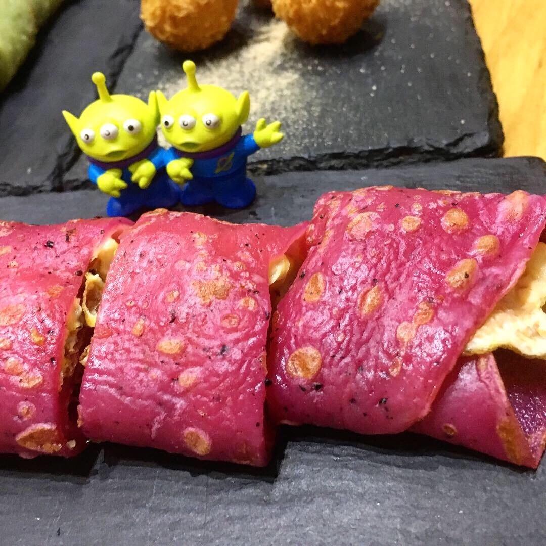 ☘️馬卡龍鹽酥雞蛋餅(火龍果) $50