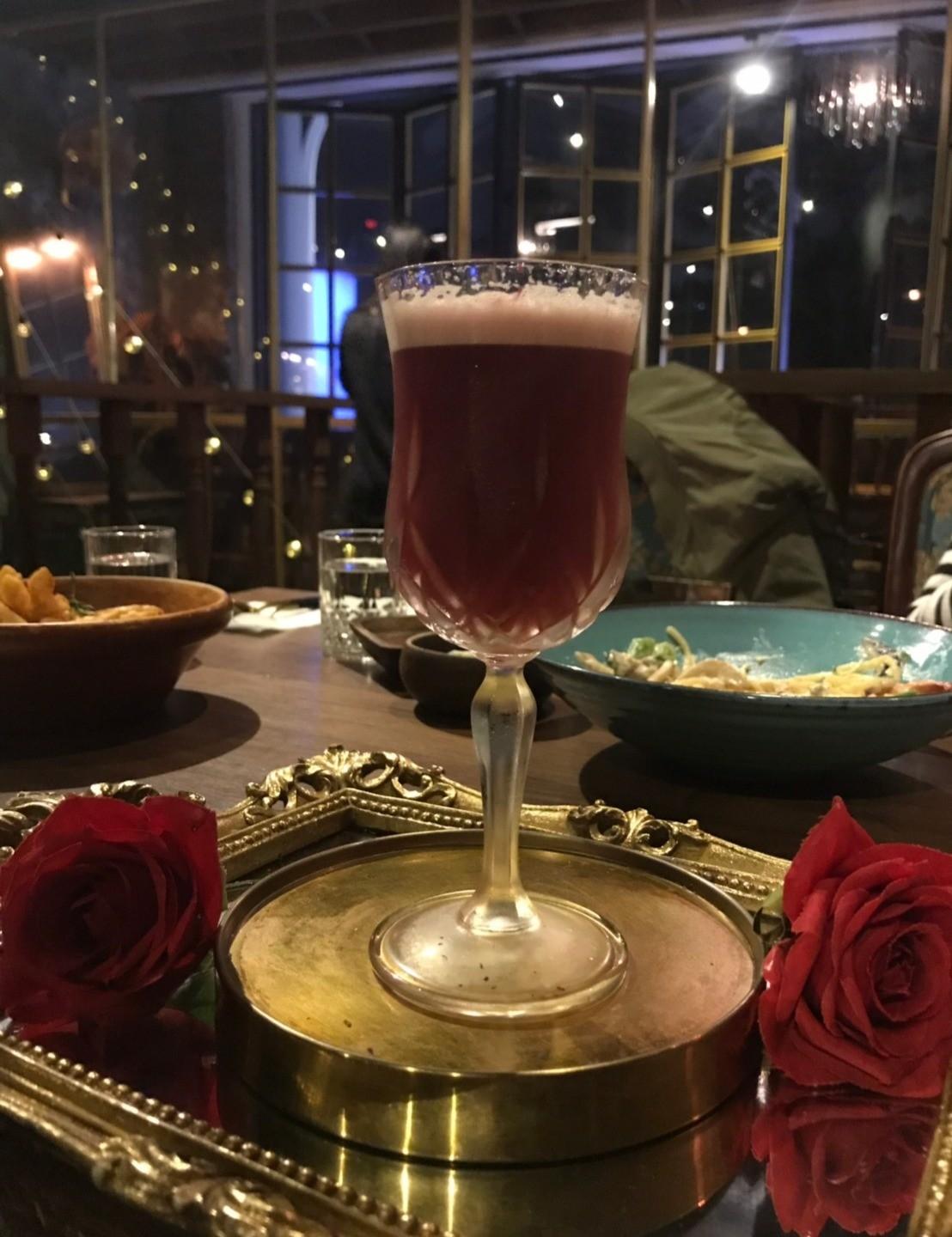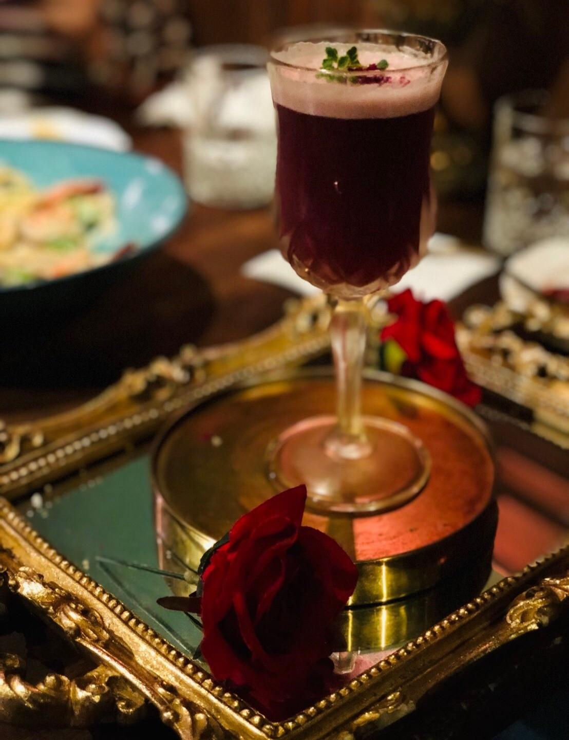 🍸Beauty & Beast 美女與野獸 - 服務員端來有蓋罩子的餐盤,罩子裡面有乾冰製造的煙霧吧~打開來之後等到煙消雲散就發現是一杯玫瑰的調酒。